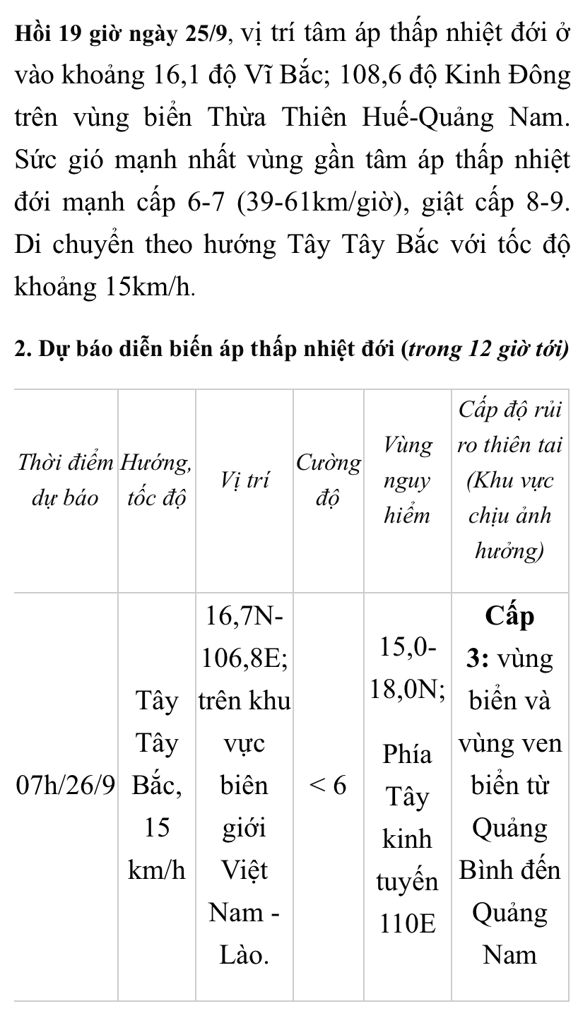 Vị trí và đường đi của áp thấp nhiệt đới.