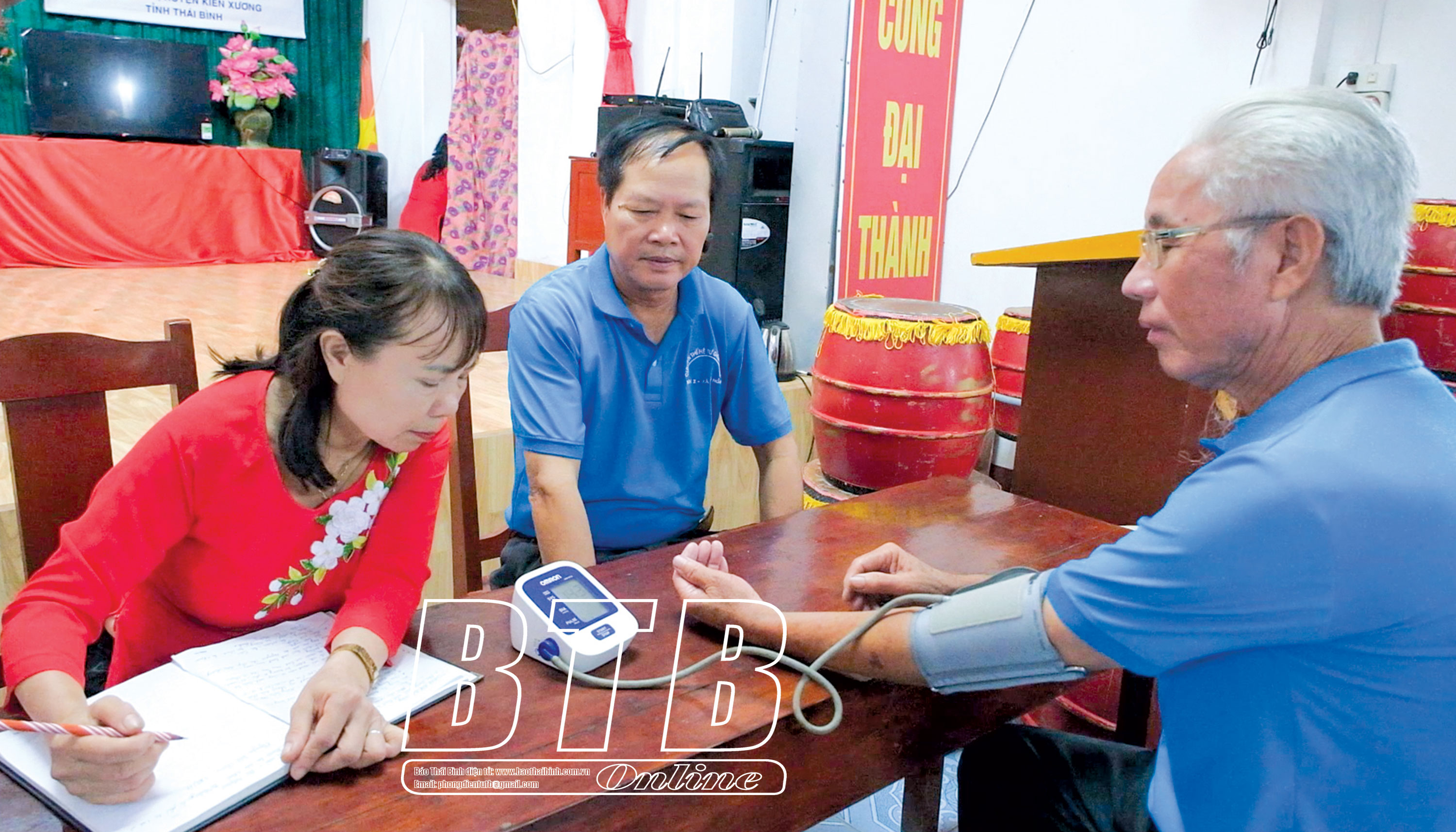 Hội Người cao tuổi xã Vũ Hòa (Kiến Xương) khám, theo dõi sức khỏe cho hội viên.