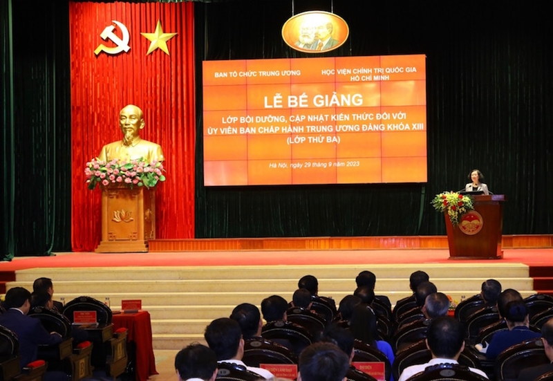 Ủy viên Bộ Chính trị, Thường trực Ban Bí thư Trương Thị Mai, Trưởng Ban Tổ chức Trung ương, Trưởng Ban Chỉ đạo Lớp bồi dưỡng tới dự và phát biểu chỉ đạo.