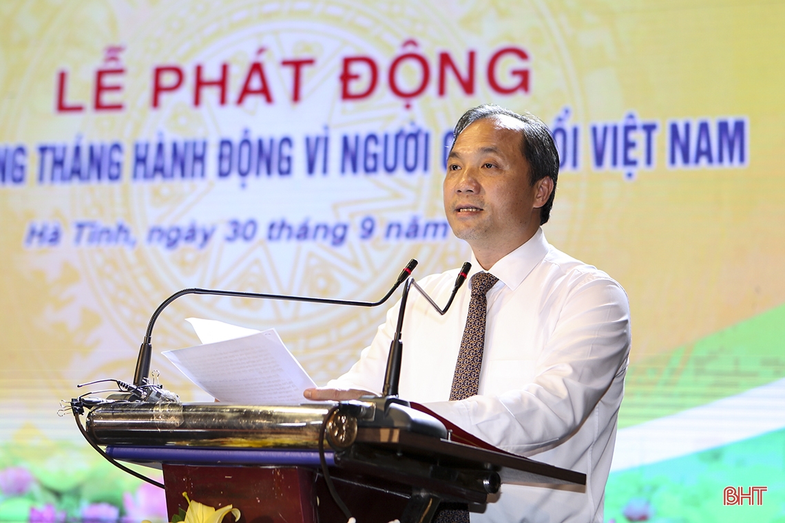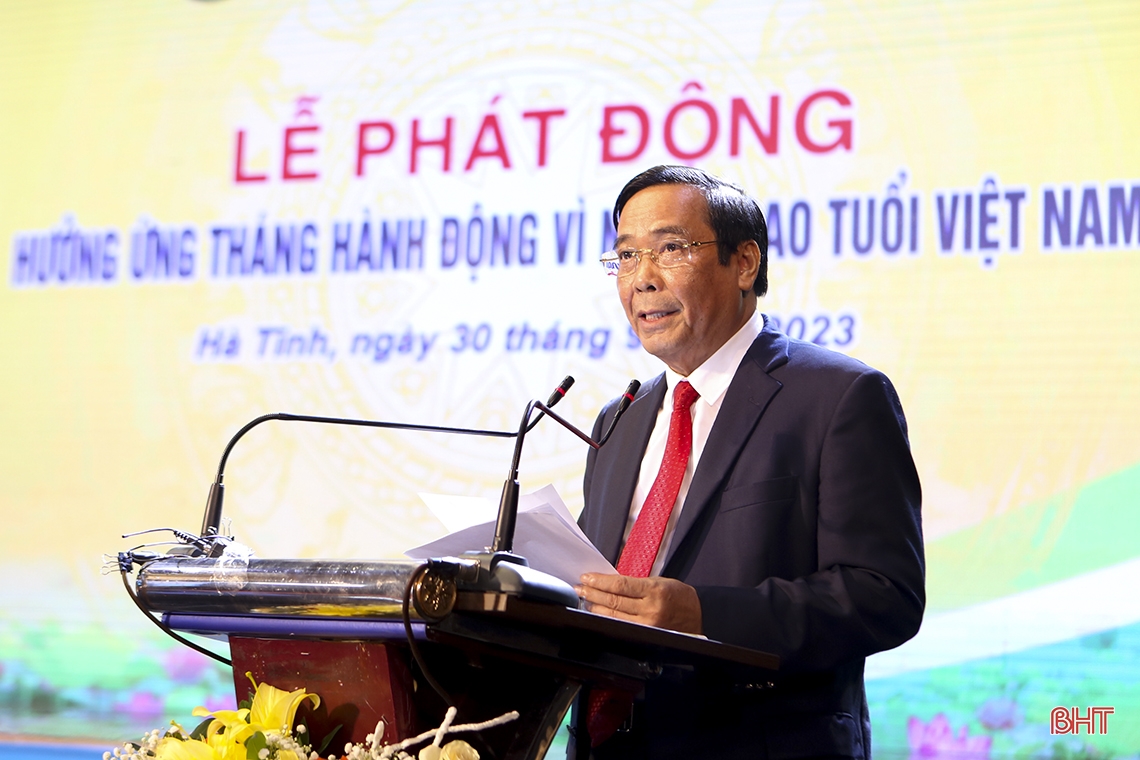 Bí thư Tỉnh ủy Hà Tĩnh Hoàng Trung Dũng phát biểu hưởng ứng lễ phát động Tháng hành động vì người cao tuổi Việt Nam năm 2023.