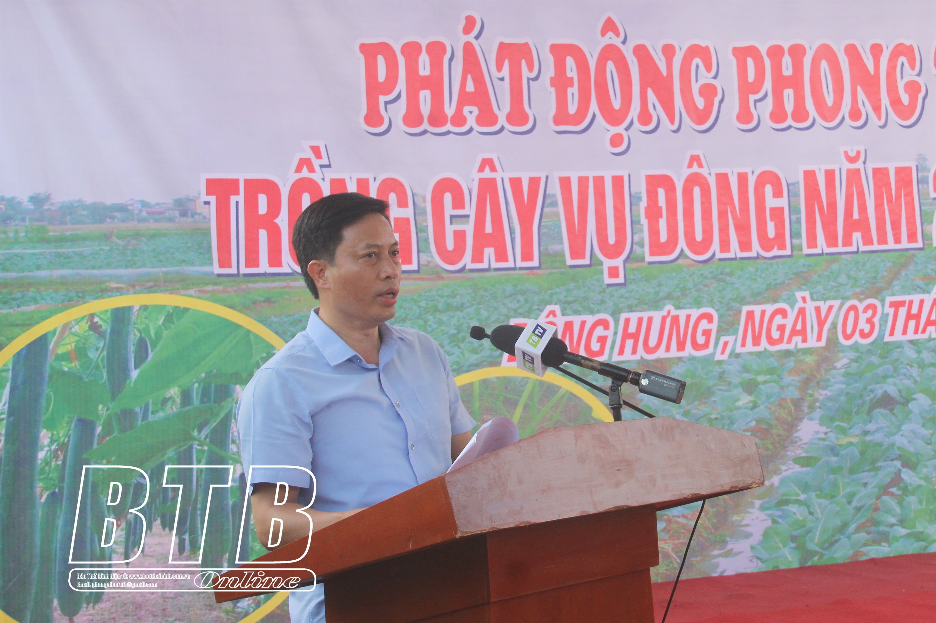 Phát biểu tại lễ phát động, đồng chí Lại Văn Hoàn, Tỉnh ủy viên, Phó Chủ tịch UBND tỉnh nhấn mạnh: Vụ đông là vụ có thời gian ngắn, sản phẩm đa dạng, thị trường tiêu thụ khá ổn định, tạo ra sản lượng nông sản lớn, giá trị cao, góp phần thúc đẩy sản xuất nông nghiệp hàng hóa, tạo công ăn việc làm, nâng cao thu nhập cho nhiều hộ nông dân. Xác định vị trí, tầm quan trọng đặc biệt của sản xuất vụ đông, Tỉnh ủy, HĐND, UBND tỉnh đã ban hành nhiều chủ trương, cơ chế chính sách, đồng thời tập trung lãnh đạo, chỉ đạo quyết liệt; vì vậy, vụ đông ở nhiều địa phương thực sự đã trở thành vụ sản xuất chính, tạo việc làm, mang lại thu nhập cao cho người dân, góp phần quan trọng vào tăng trưởng của ngành nông nghiệp và phát triển kinh tế - xã hội của tỉnh.