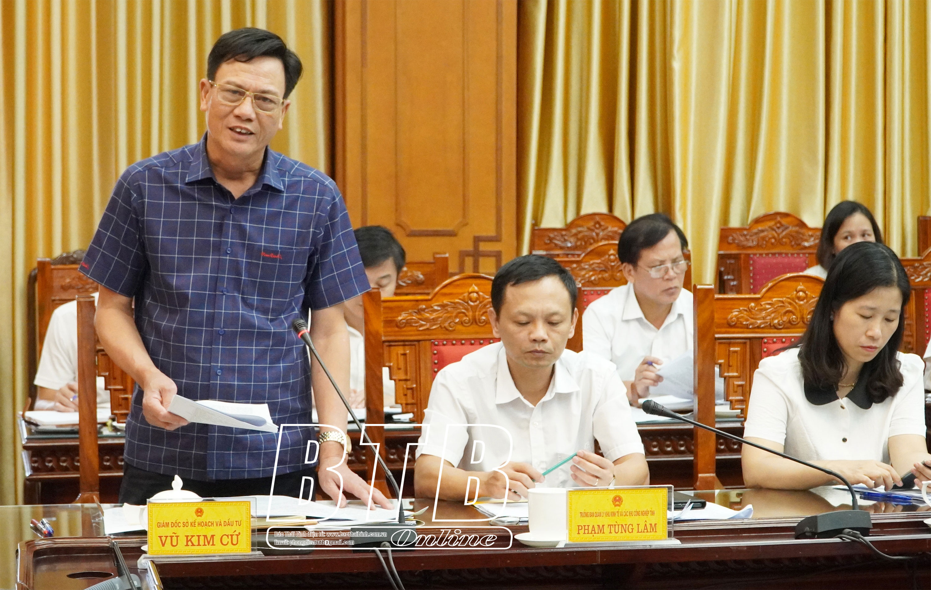 Đồng chí Vũ Kim Cứ, Ủy viên Ban Thường vụ Tỉnh ủy, Giám đốc Sở Kế hoạch và Đầu tư phát biểu tại cuộc họp.