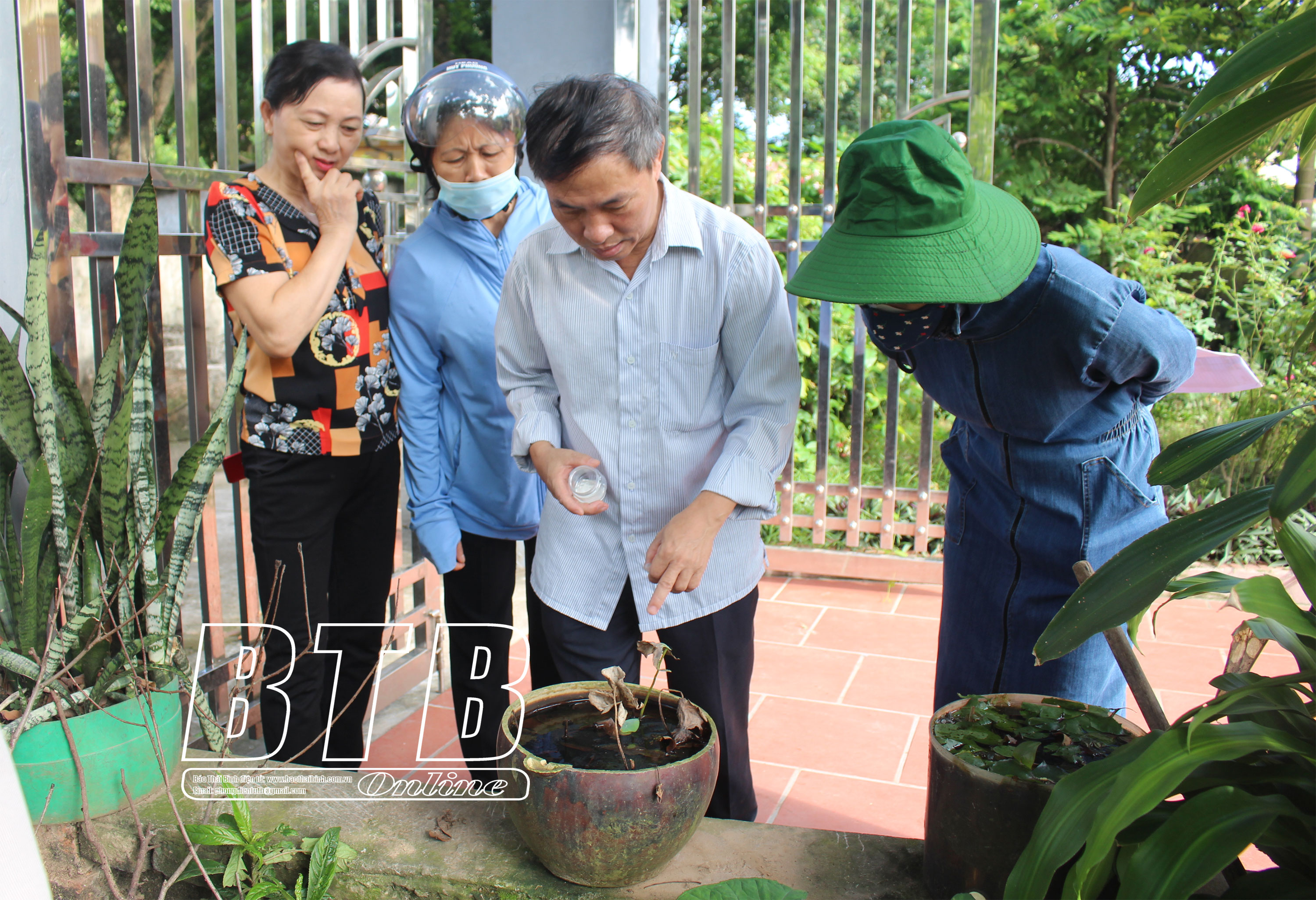 Cán bộ Trung tâm Kiểm soát bệnh tật tỉnh giám sát bệnh sốt xuất huyết tại huyện Hưng Hà.