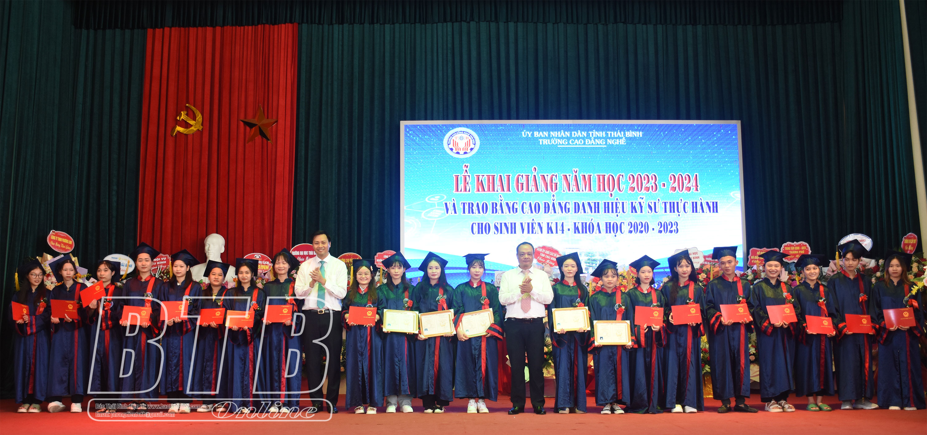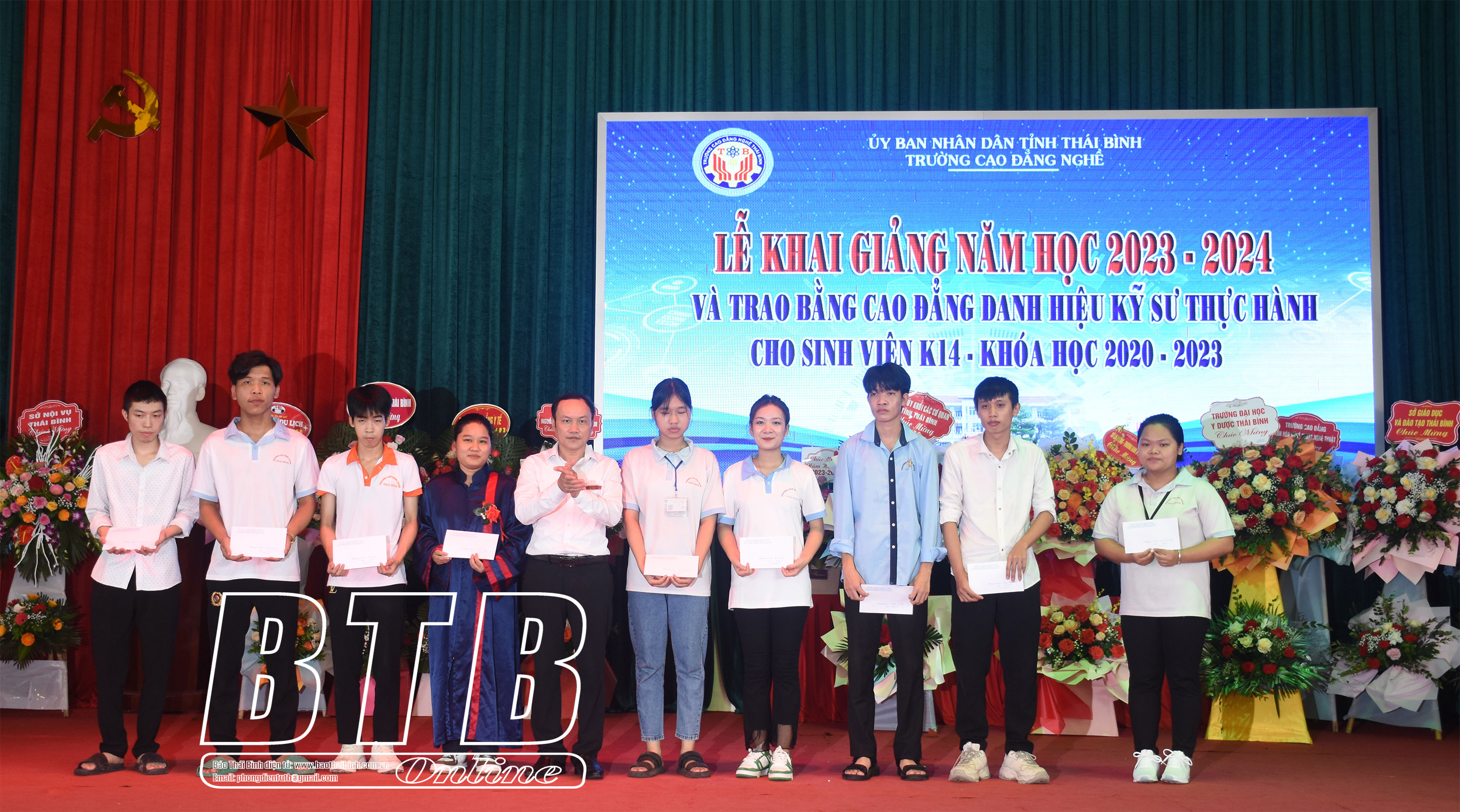 Tại lễ khai giảng, Trường Cao đẳng Nghề Thái Bình đã trao bằng cao đẳng danh hiệu kỹ sư thực hành cho sinh viên khóa 2020 – 2023 cùng nhiều phần thưởng cho những sinh viên xuất sắc trong đợt thực tập và học sinh, sinh viên vượt khó vươn lên trong học tập năm học 2020- 2023.