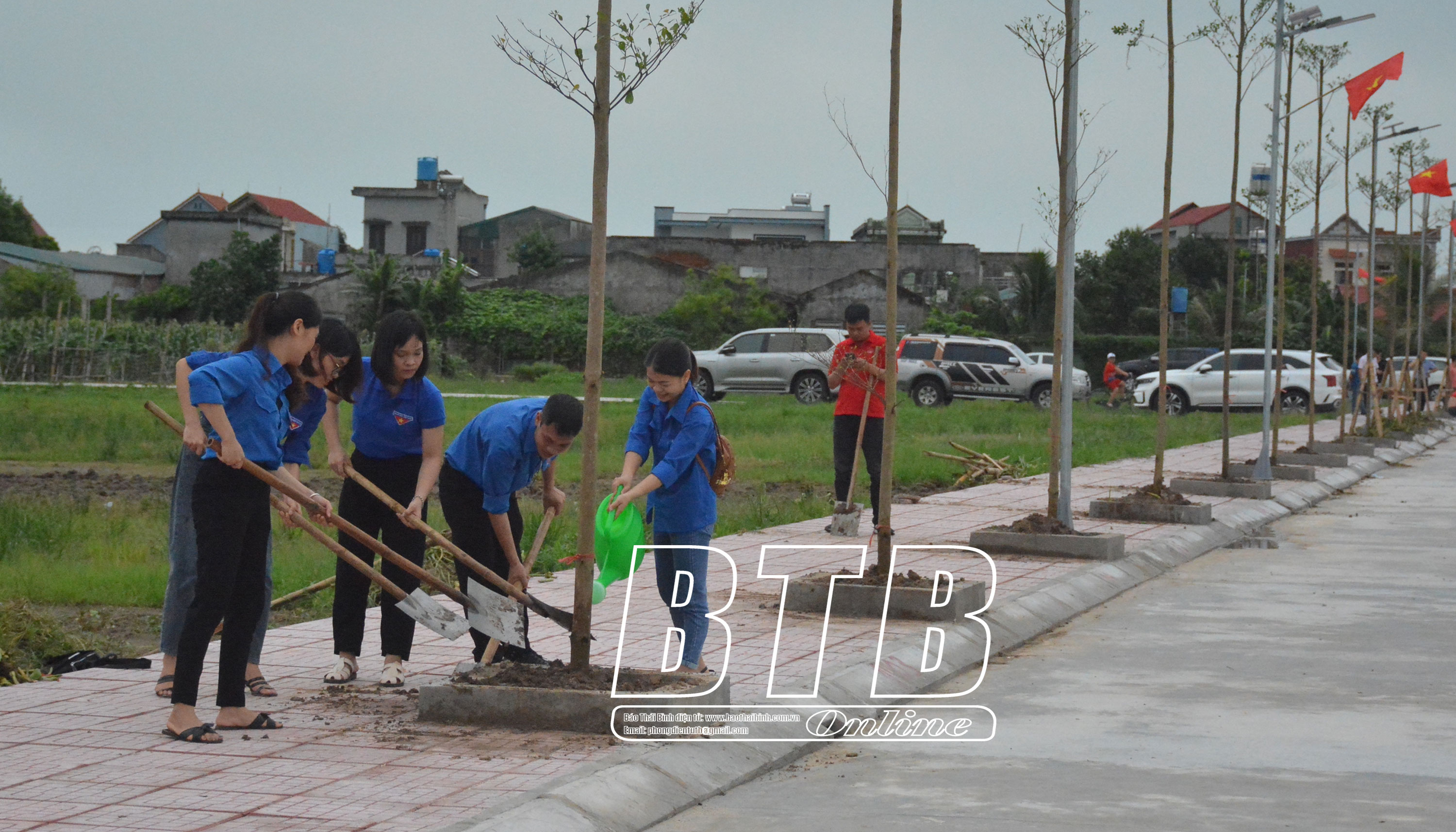 Công trình hàng cây thanh niên và công trình thanh niên thắp sáng đường quê tại xã Đông Xá (Đông Hưng).