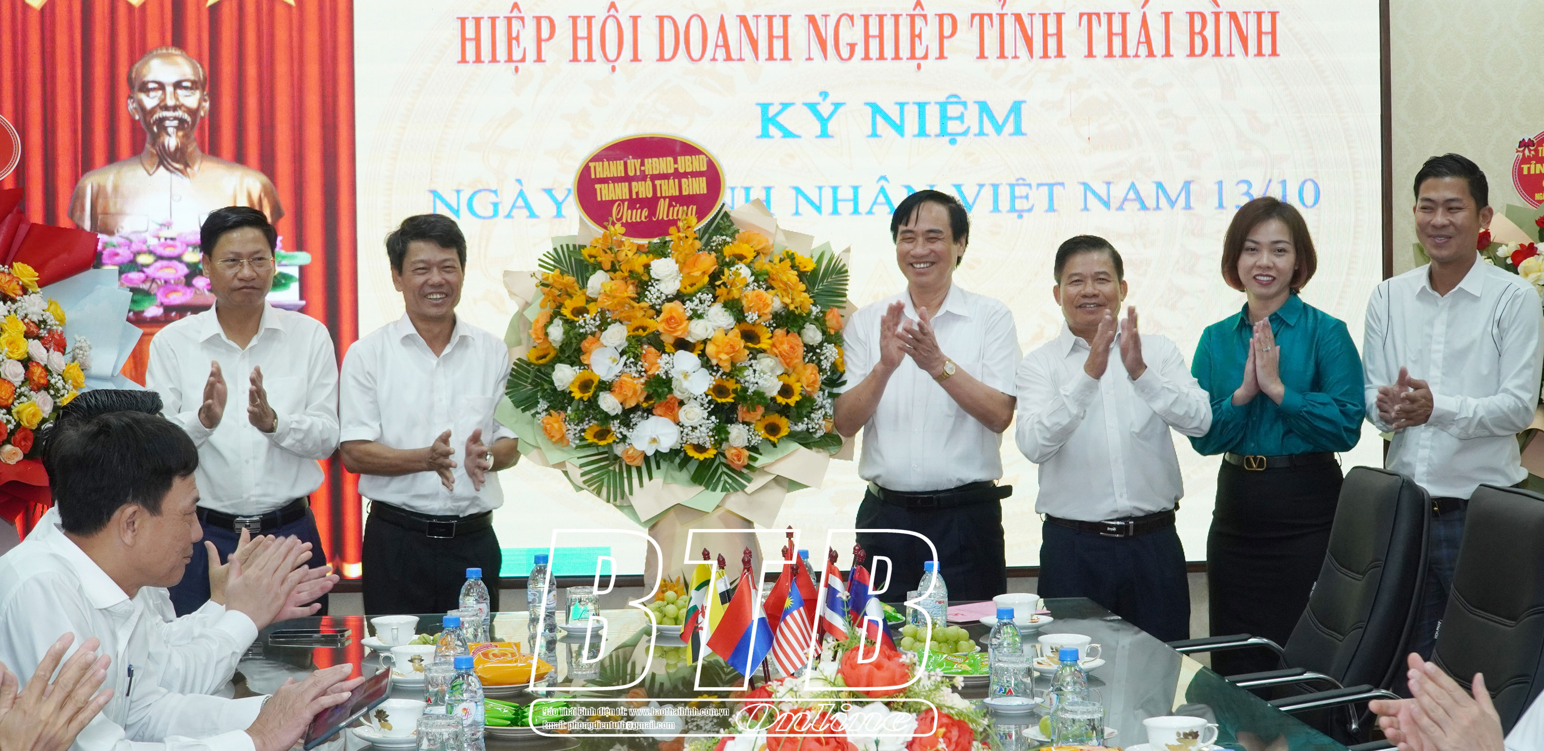 Lãnh đạo thành phố Thái Bình tặng hoa chúc mừng Hiệp hội Doanh nghiệp tỉnh.