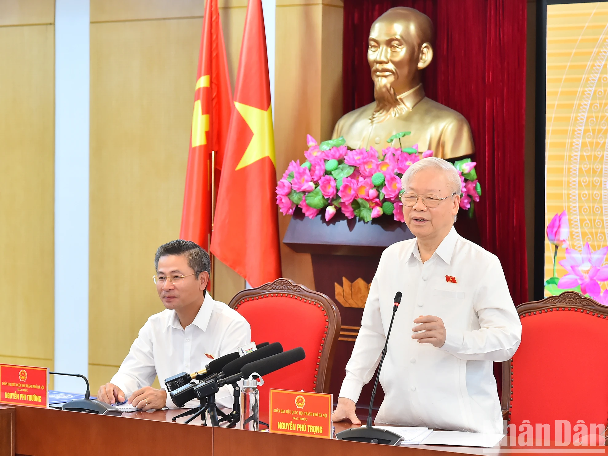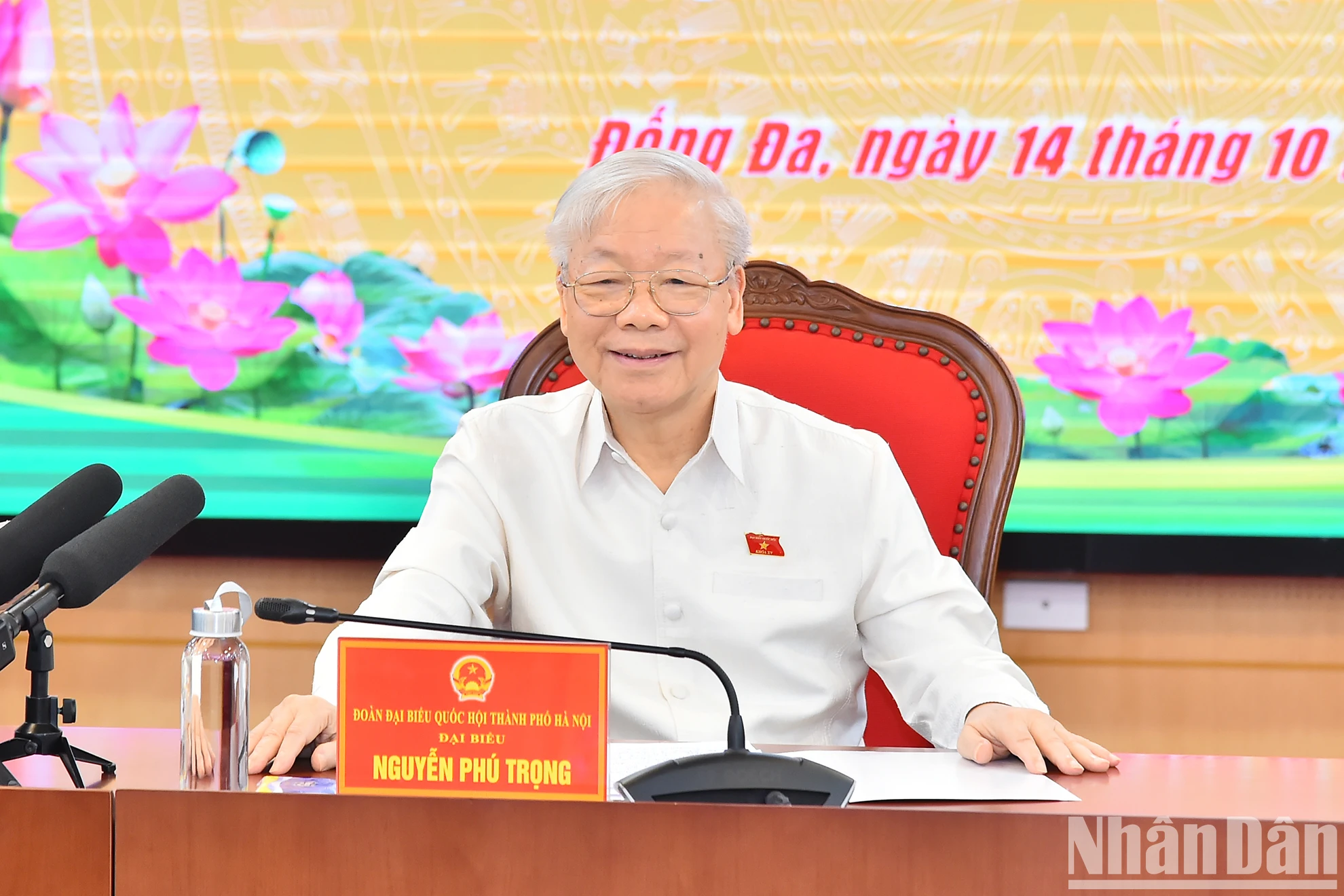 Tổng Bí thư Nguyễn Phú Trọng cùng các đại biểu Quốc hội Đơn vị bầu cử số 1, thành phố Hà Nội tham dự buổi tiếp xúc cử tri.