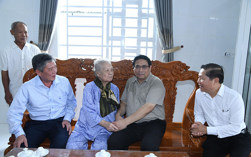 Thủ tướng Phạm Minh Chính thăm Mẹ Việt Nam Anh hùng Trần Thị Nhựt, huyện Tiểu Cần, tỉnh Trà Vinh.