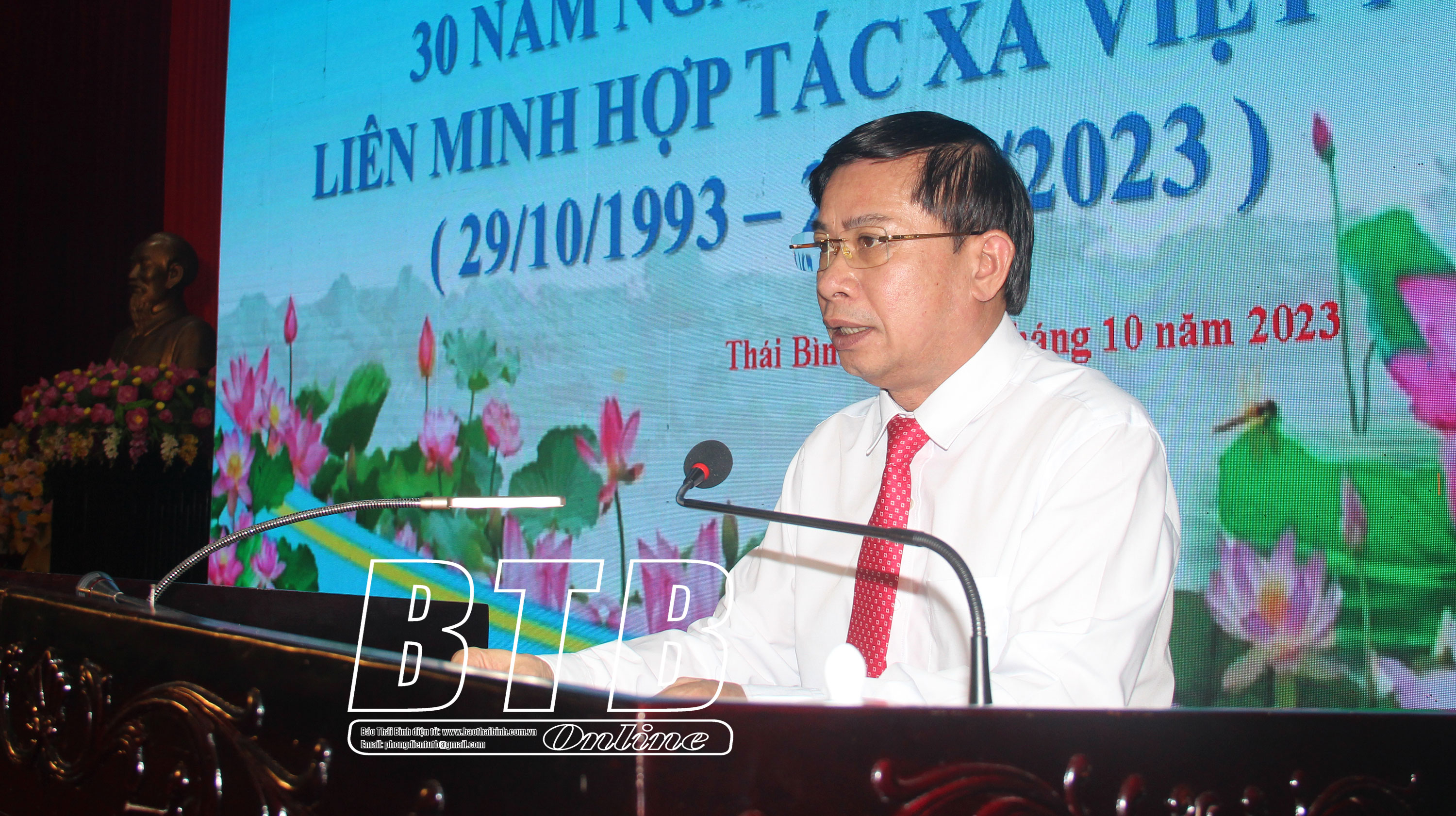 Phát biểu tại lễ kỷ niệm, đồng chí Phó Chủ tịch Liên minh HTX Việt Nam mong muốn Liên minh HTX tỉnh Thái Bình là nòng cốt tham mưu, đề xuất cấp ủy, chính quyền địa phương về phát triển KTTT, góp phần xây dựng, phát triển kinh tế, xã hội. Tiếp tục giúp đỡ các HTX xây dựng mối quan hệ liên kết chặt chẽ giữa doanh nghiệp và HTX trong sản xuất, tiêu thụ sản phẩm. Nâng cao chất lượng sản phẩm theo các tiêu chuẩn VietGAP, GlobalGAP, sản phẩm hữu cơ; áp dụng các quy trình công nghệ cao trong sản xuất theo kinh tế tuần hoàn, sản xuất xanh. Tích cực chuyển đổi số; nâng cao năng suất, chất lượng sản phẩm, đẩy mạnh sơ chế, chế biến sản phẩm, nới rộng giá trị gia tăng, tăng tỷ lệ đóng góp vào GRDP của tỉnh.