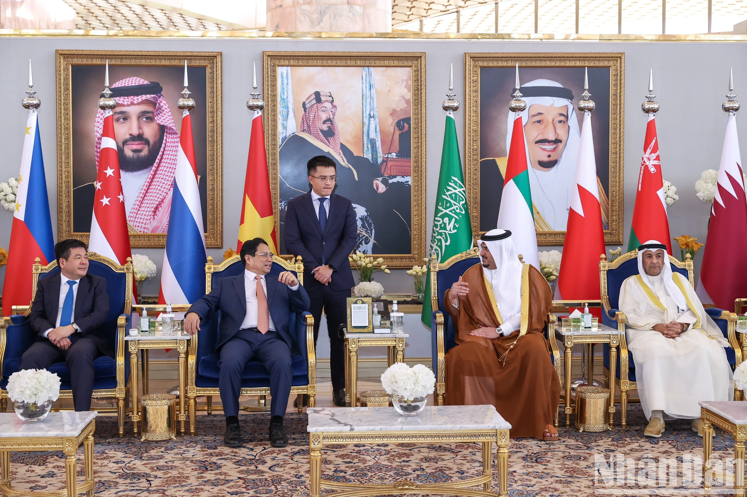 Ra sân bay đón Thủ tướng Phạm Minh Chính và Đoàn đại biểu Cấp cao Việt Nam về phía Saudi Arabia có Thống đốc thành phố Riyadh, Tổng Thư ký GCC, Đại sứ Saudi Arabia tại Việt Nam. Về phía Việt Nam có Đại sứ Việt Nam tại Saudi Arabia Đặng Xuân Dũng, cán bộ, nhân viên Đại sứ quán.