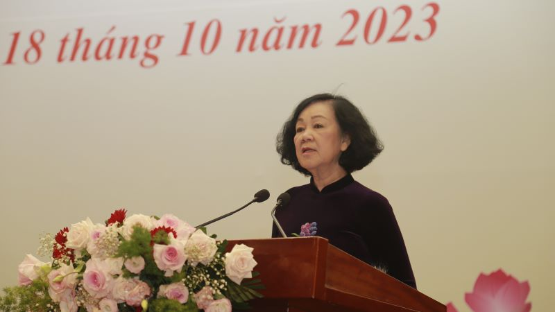 Ngày 18/10, tại Hà Nội, đồng chí Trương Thị Mai, Ủy viên Bộ Chính trị, Thường trực Ban Bí thư, Trưởng Ban Tổ chức Trung ương gặp mặt các đại biểu dự Chương trình biểu dương Chủ tịch Hội Phụ nữ cơ sở giỏi toàn quốc năm 2023.