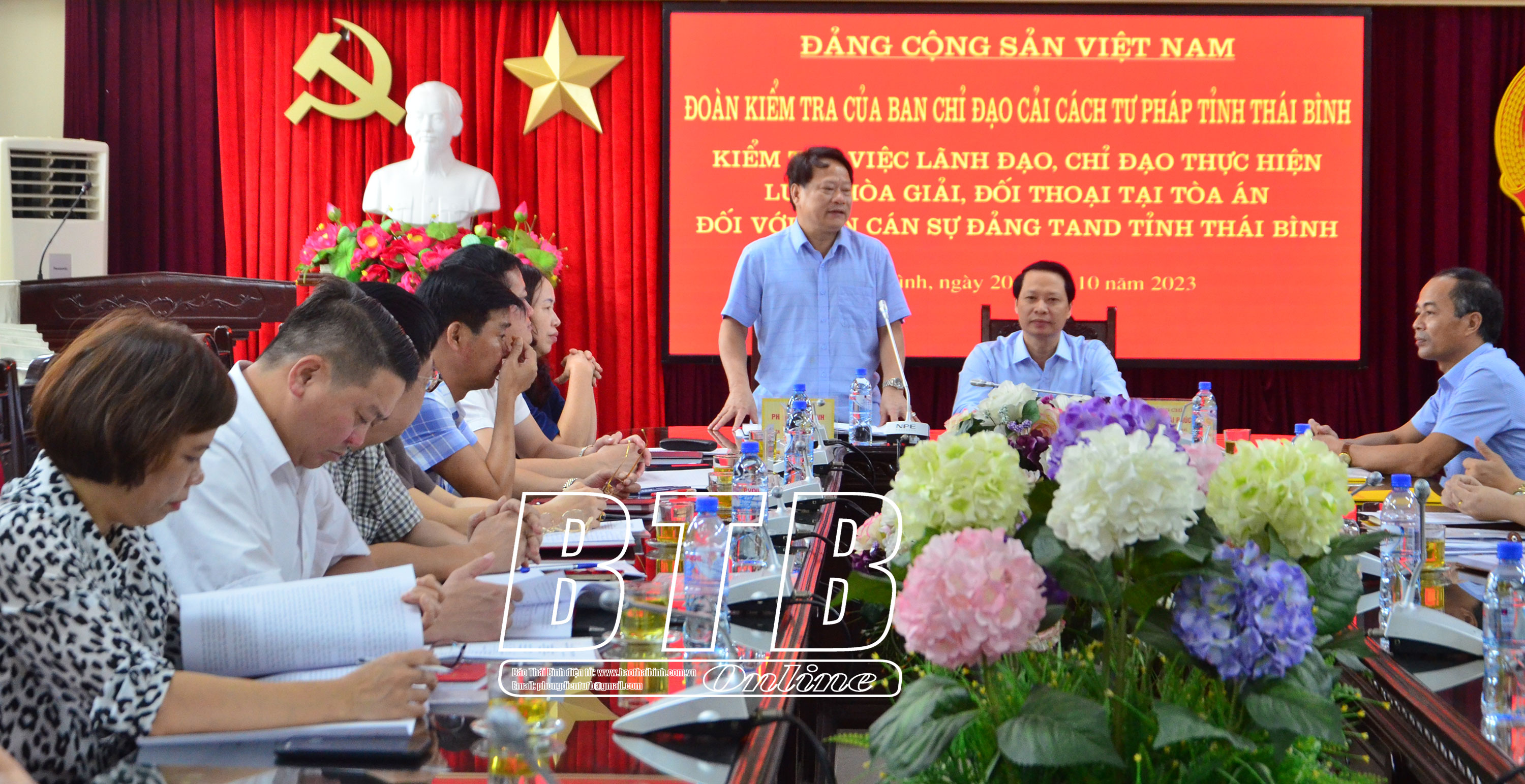 Sáng ngày 20/10, đồng chí Hoàng Thái Phúc, Ủy viên Ban Thường vụ, Trưởng ban Nội chính Tỉnh ủy, Phó Trưởng ban thường trực Ban Chỉ đạo Cải cách tư pháp tỉnh, Trưởng đoàn kiểm tra việc lãnh đạo, chỉ đạo thực hiện Luật Hòa giải, đối thoại tại tòa án đối với Ban Cán sự đảng Tòa án nhân dân tỉnh chủ trì hội nghị triển khai quyết định, kế hoạch kiểm tra tại Tòa án nhân dân tỉnh.