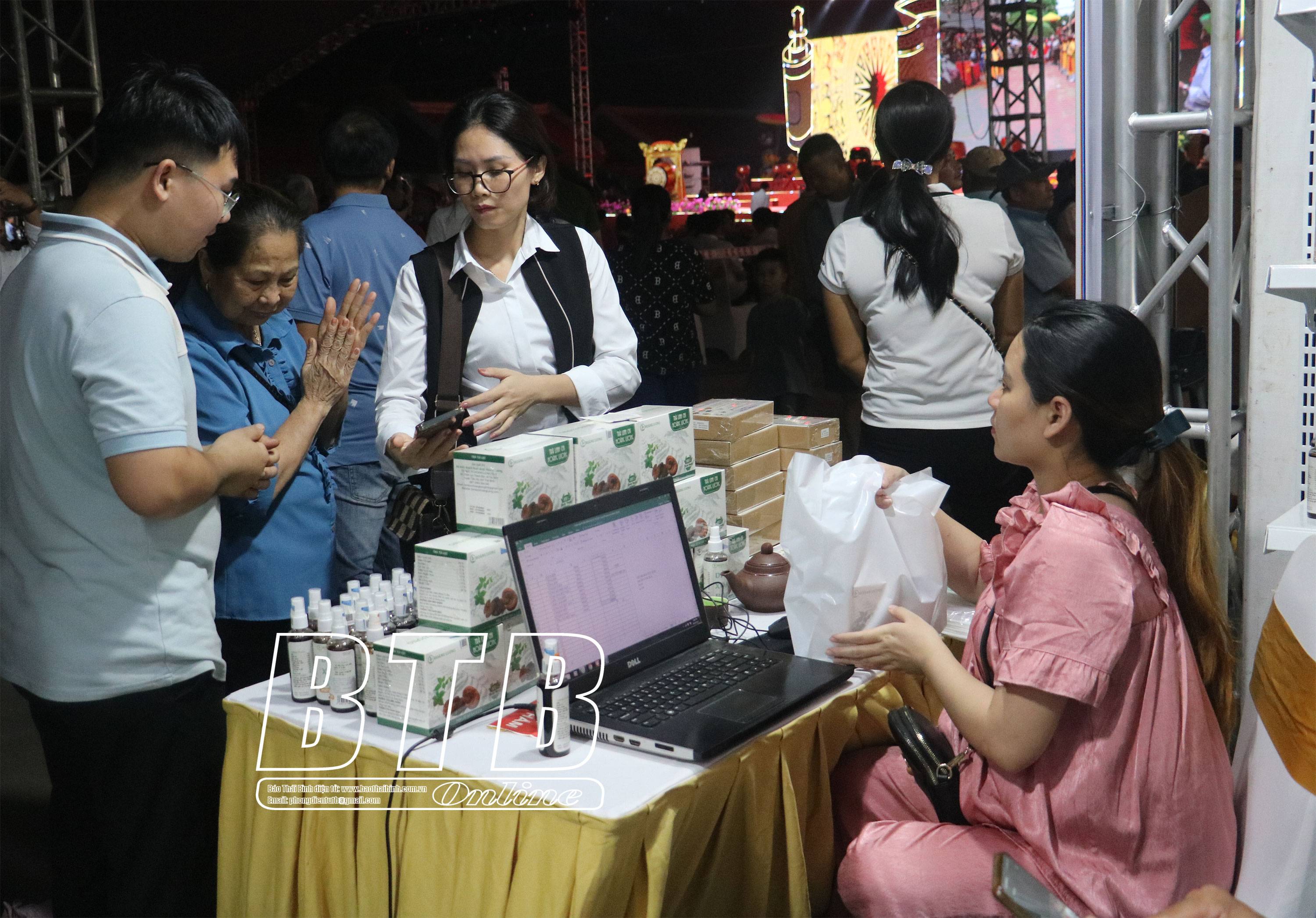 Du khách tham quan, mua sắm các sản phẩm tại gian hàng OCOP ở lễ hội.