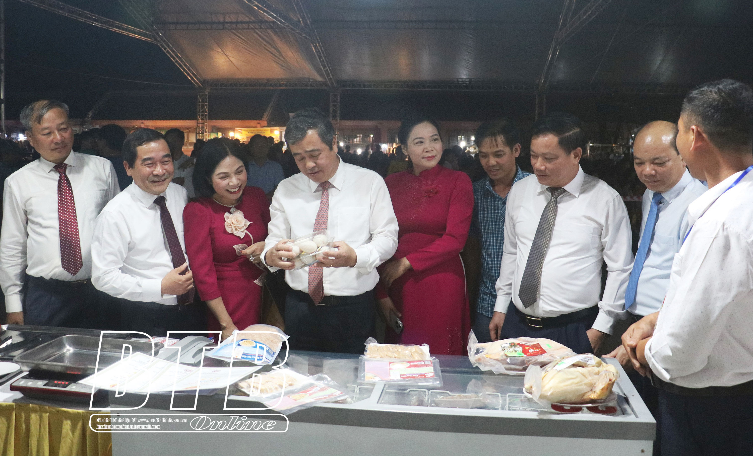 Các đồng chí lãnh đạo tỉnh tham quan gian hàng OCOP tại lễ hội.