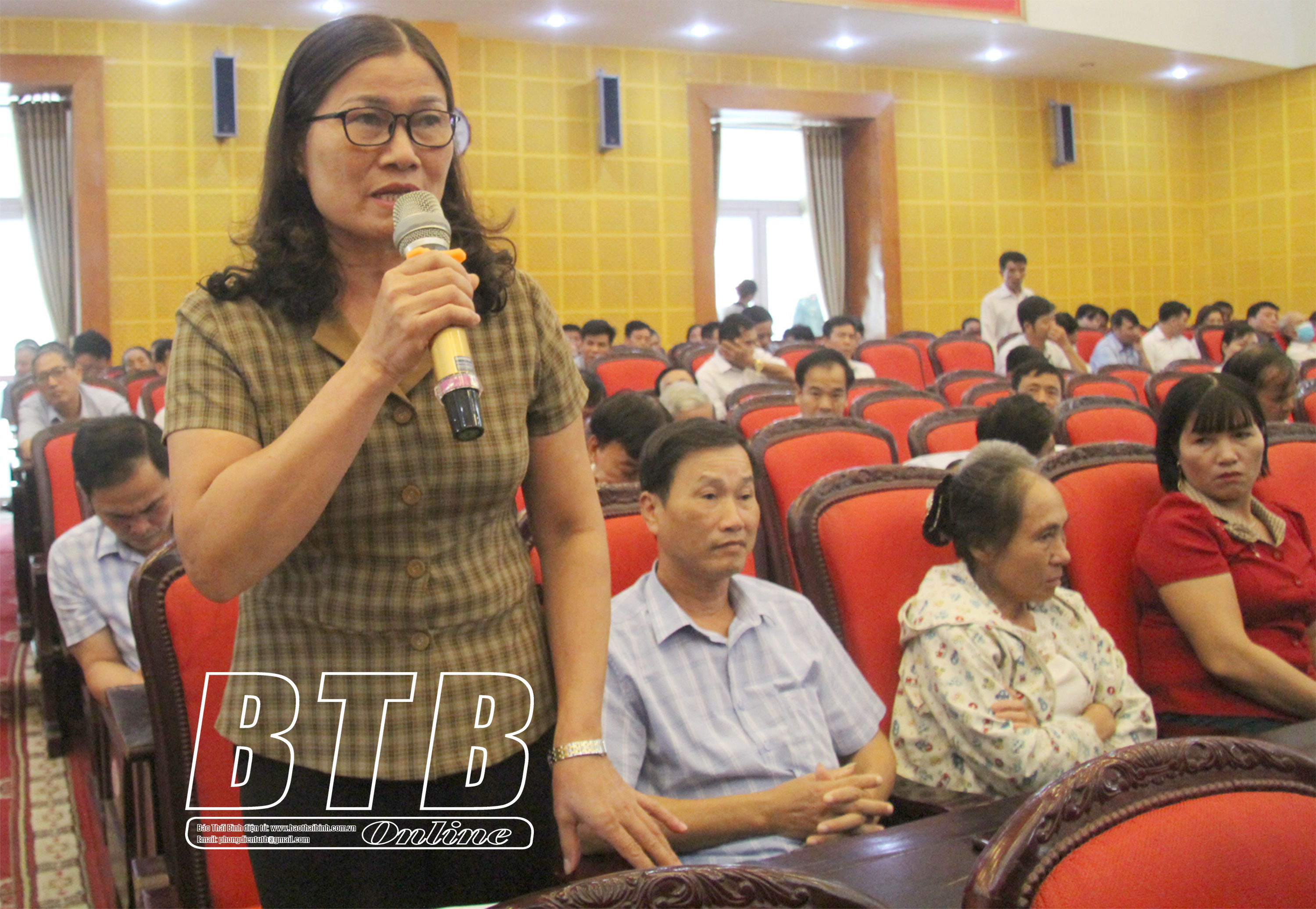 Cử tri xã Thái Hưng phát biểu tại buổi tiếp xúc.Cử tri xã Canh Tân đề nghị có giải pháp xử lý môi trường tại làng nghề.