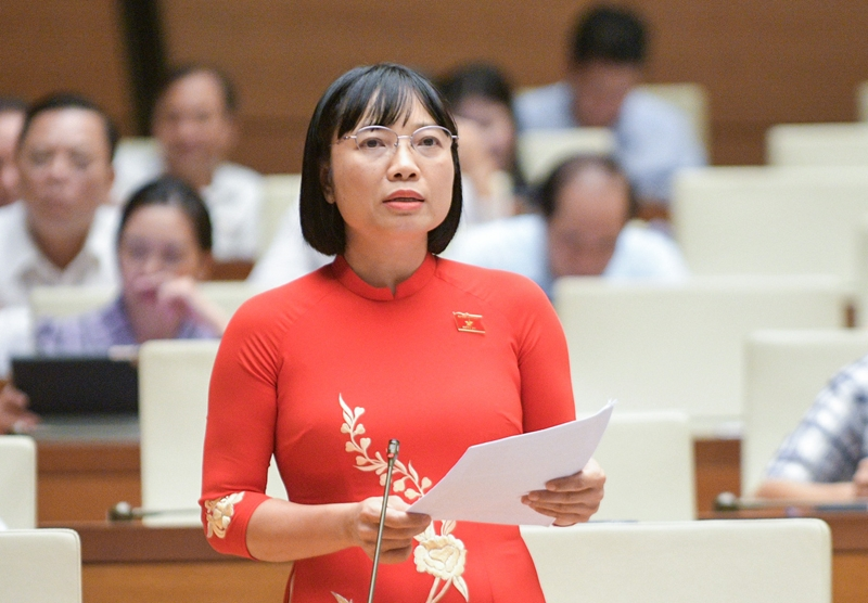 Đại biểu Nguyễn Thị Việt Nga (đoàn Hải Dương) phát biểu tại Hội trường sáng 25/10. Ảnh: QH.