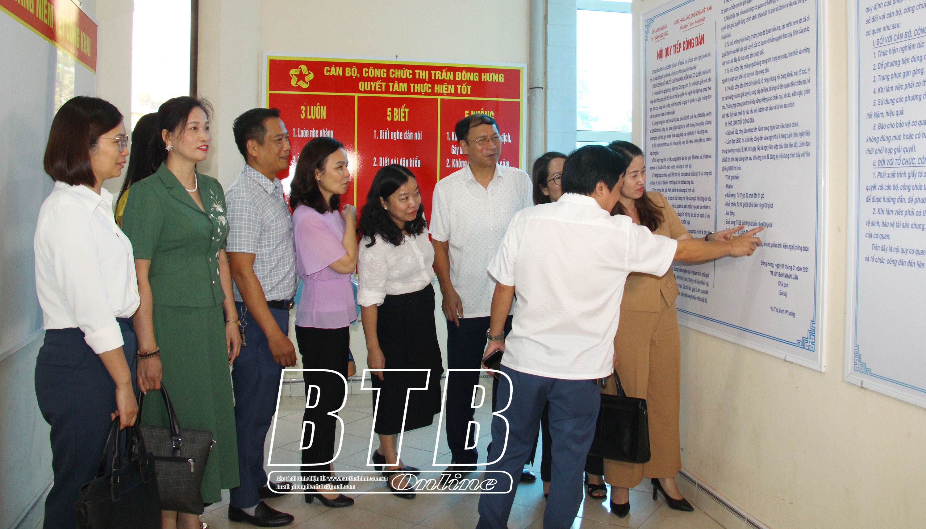 Đoàn kiểm tra việc niêm yết và thực hiện quy chế tiếp công dân.Thành viên đoàn kiểm tra việc niêm yết thủ tục hành chính tại Bộ phận tiếp nhận và trả kết quả thị trấn Đông Hưng.