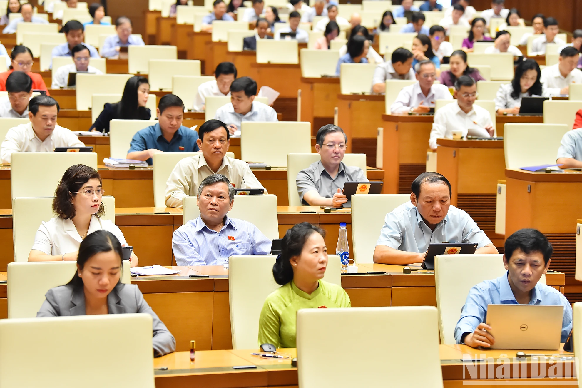 Các đại biểu làm việc tại hội trường Quốc hội sáng 27/10. (Ảnh: THỦY NGUYÊN).