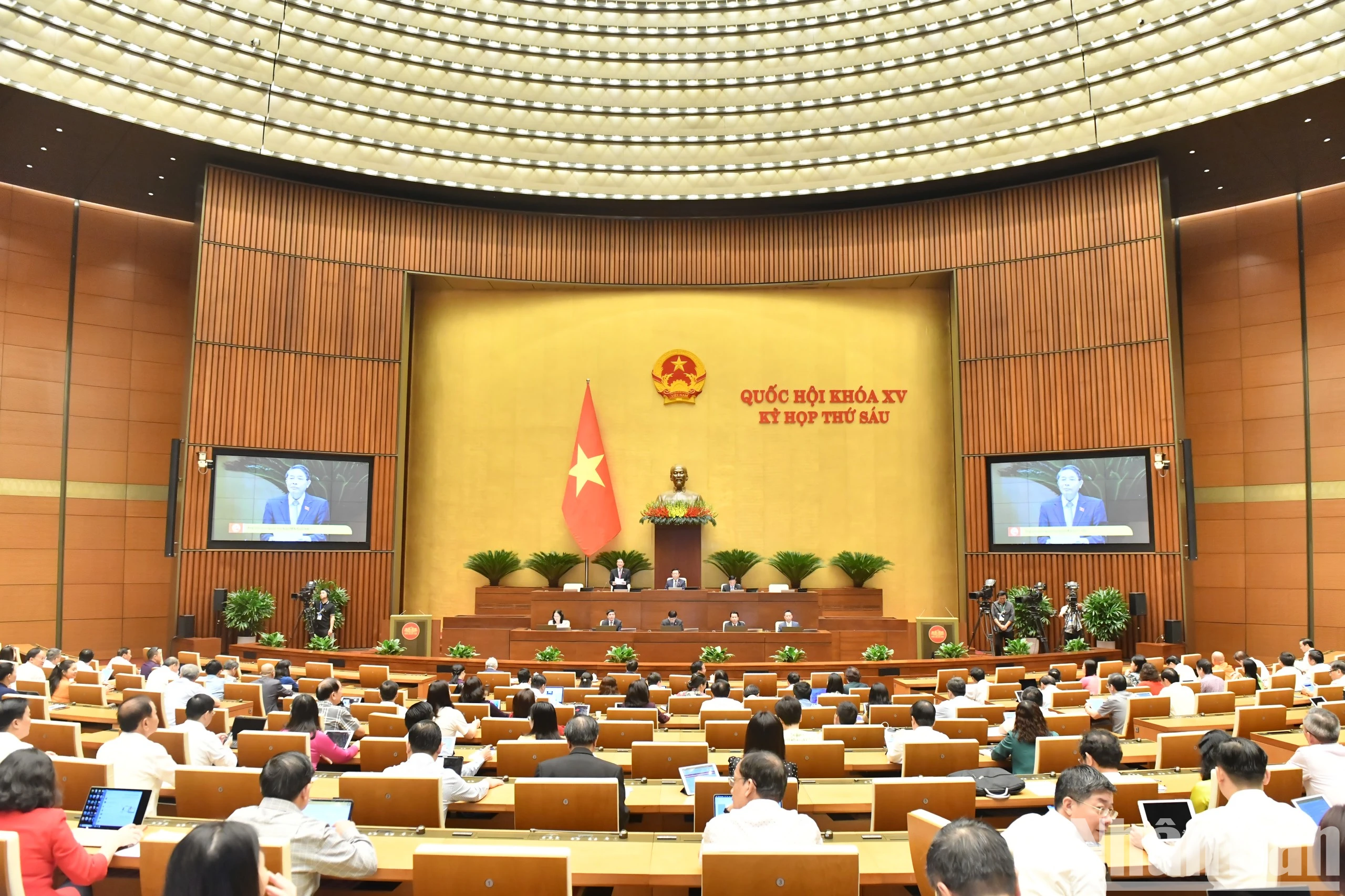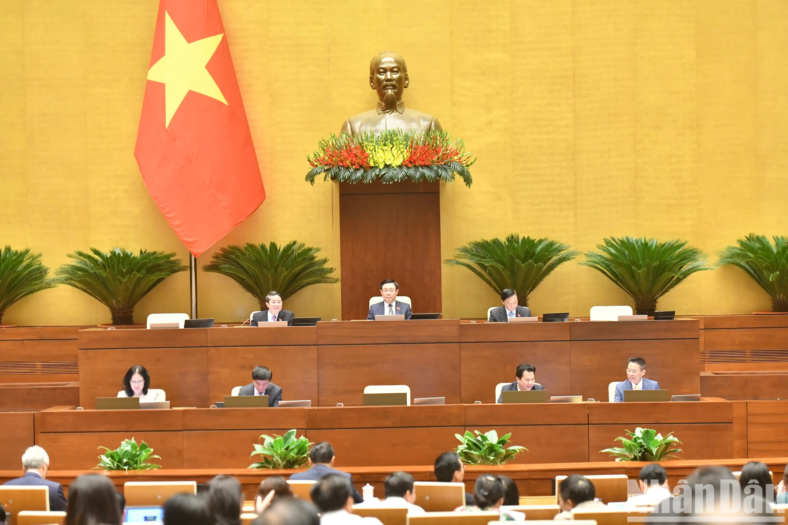 Chủ tịch Quốc hội Vương Đình Huệ và các Phó Chủ tịch Quốc hội điều hành phiên họp. (Ảnh: ĐĂNG KHOA).