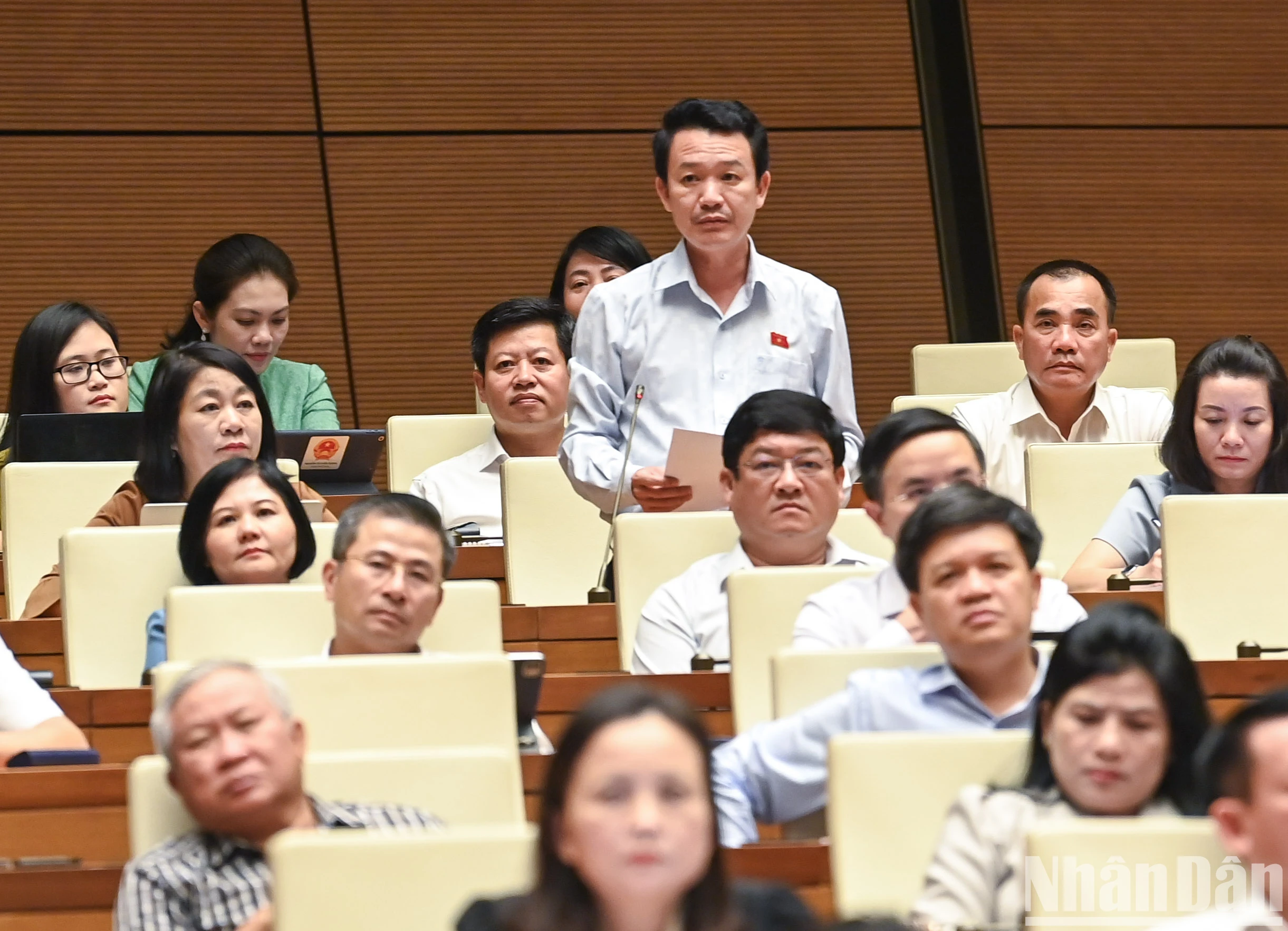 Đại biểu Trần Quang Minh (Quảng Bình) đặt câu hỏi chất vấn Bộ trưởng Giao thông vận tải Nguyễn Văn Thắng. (Ảnh: DUY LINH).