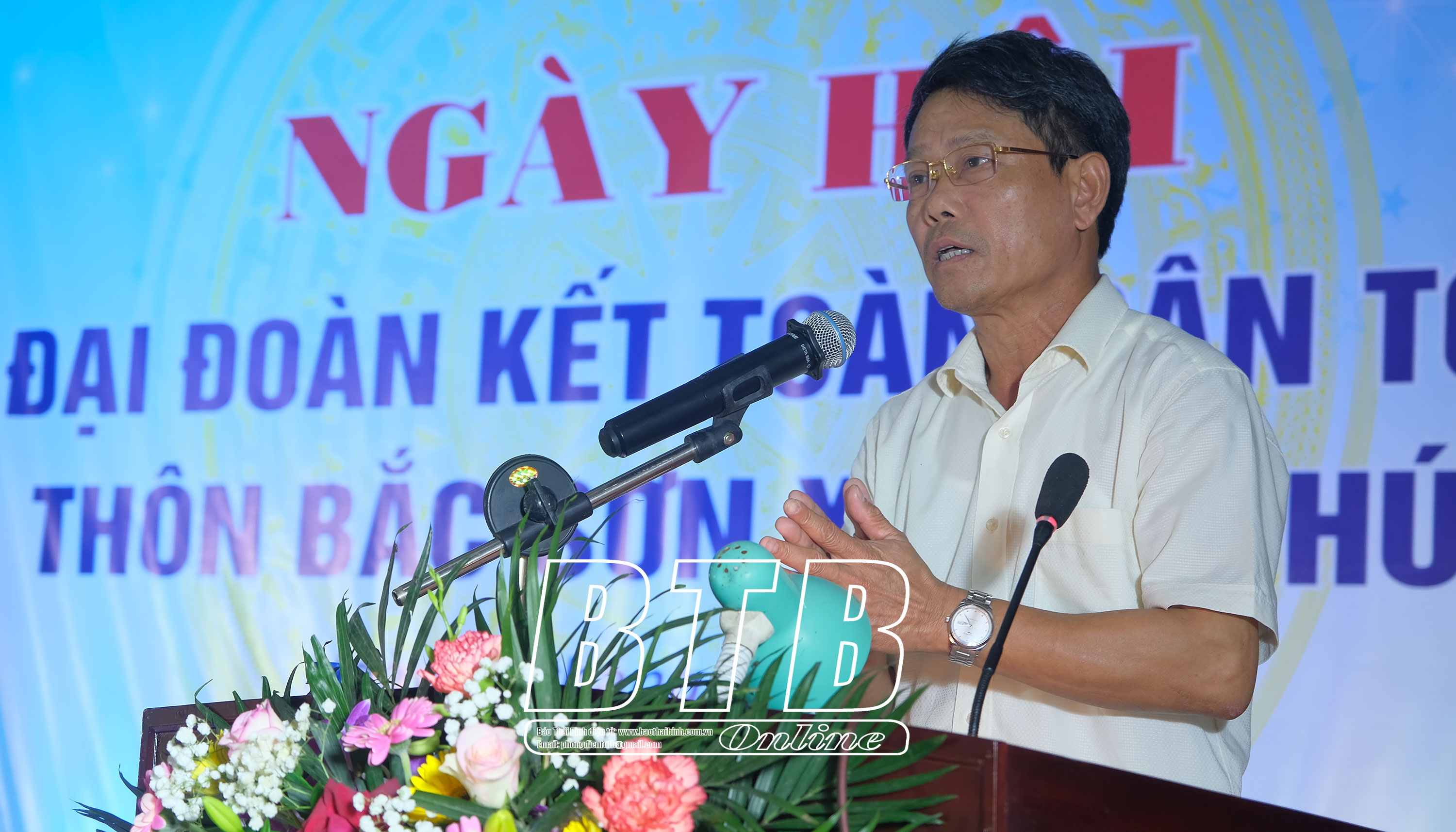 Phát biểu tại ngày hội, đồng chí Bí thư Thành ủy, Chủ tịch HĐND thành phố bày tỏ sự vui mừng trước những kết quả đạt được của thôn Bắc Sơn. Đồng chí đề nghị cấp ủy, chính quyền thôn Bắc Sơn tiếp tục thực hiện tốt 5 nội dung cuộc vận động “Toàn dân đoàn kết xây dựng nông thôn mới, đô thị văn minh”; tuyên truyền, vận động nhân dân chấp hành nghiêm chủ trương, đường lối của Đảng, chính sách, pháp luật của Nhà nước, đoàn kết giúp nhau phát triển kinh tế; tích cực chuyển đổi cơ cấu cây trồng, vật nuôi; đẩy mạnh tích tụ ruộng đất; xây dựng mô hình kinh tế hiệu quả. Huy động mọi nguồn lực để chăm lo cho người nghèo, người yếu thế, góp phần hoàn thiện, nâng cao các tiêu chí phấn đấu đưa Vũ Phúc sớm  lên phường.