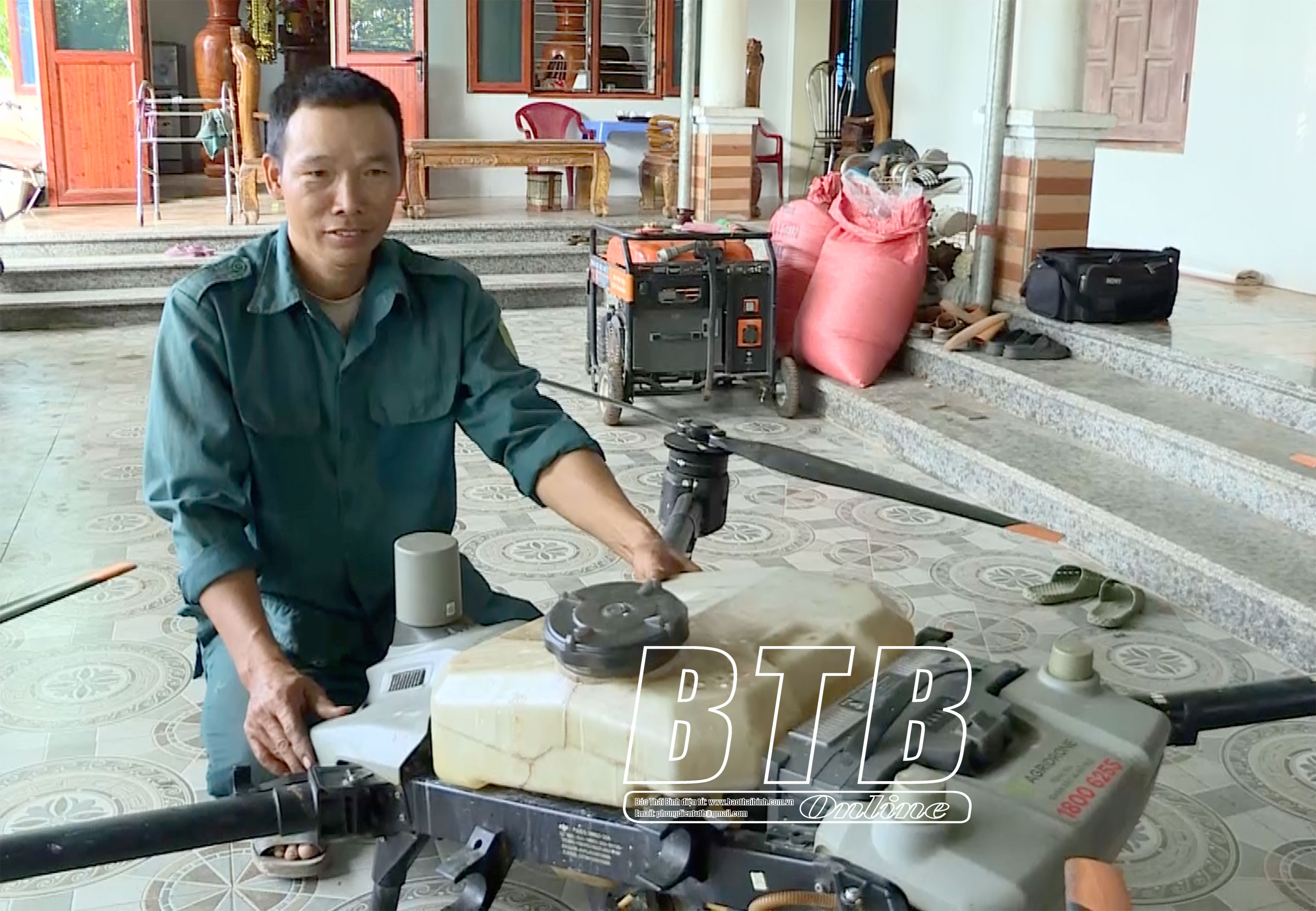 Anh Nguyễn Ngọc Duy đầu tư máy bay phun thuốc trừ sâu để thuận lợi trong sản xuất nông nghiệp.