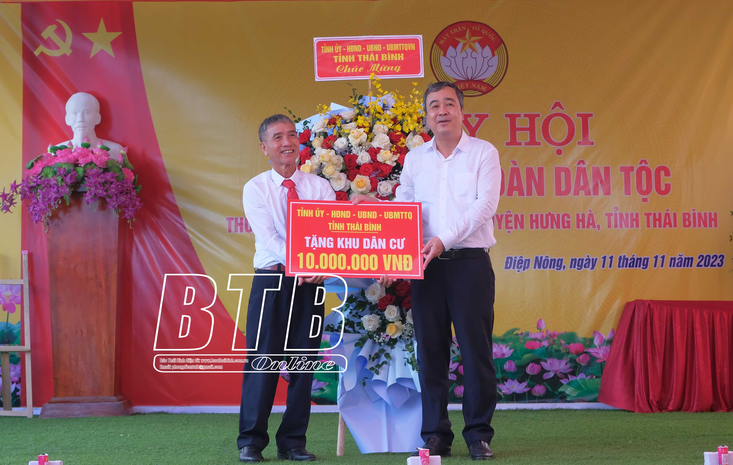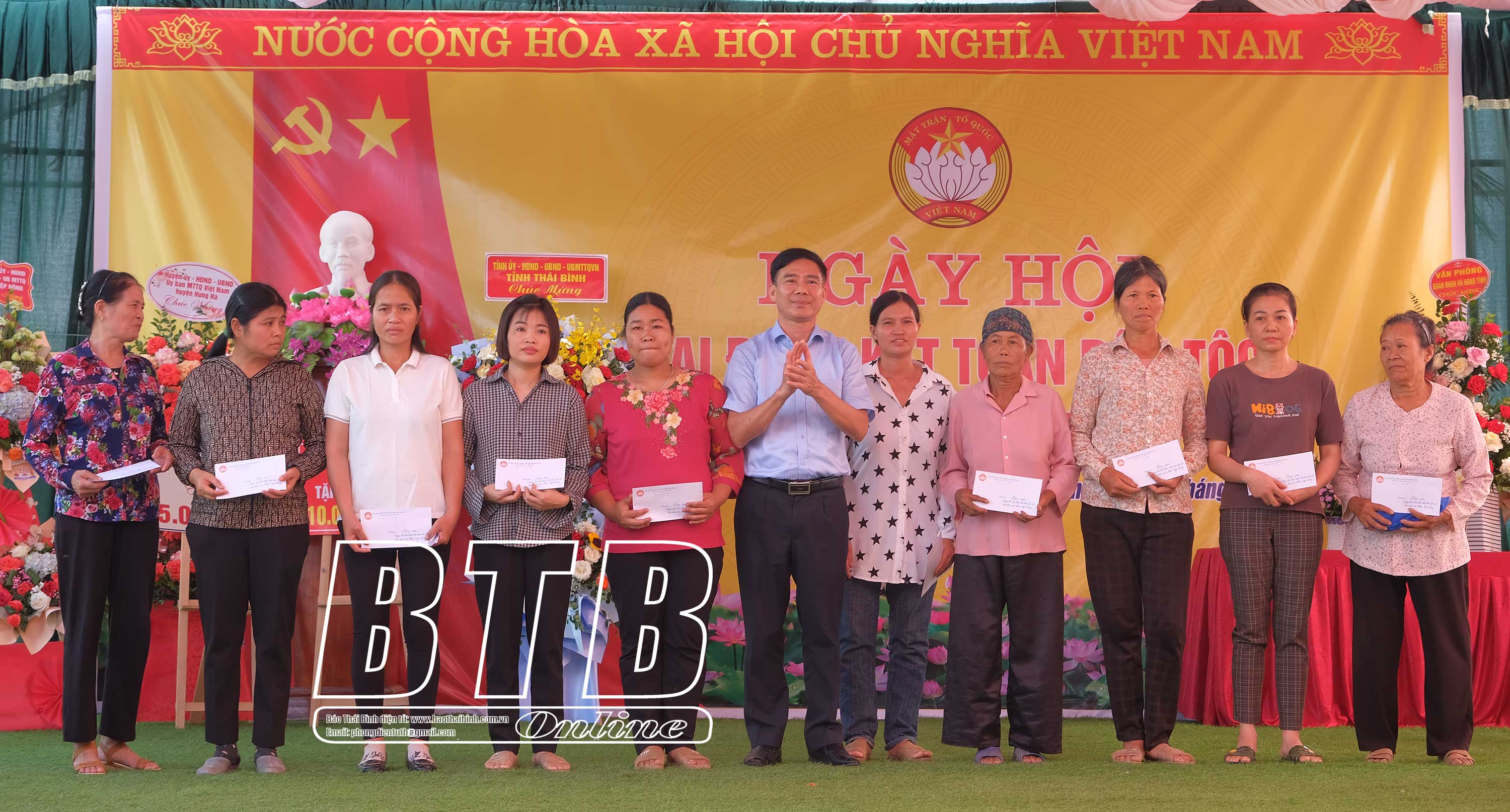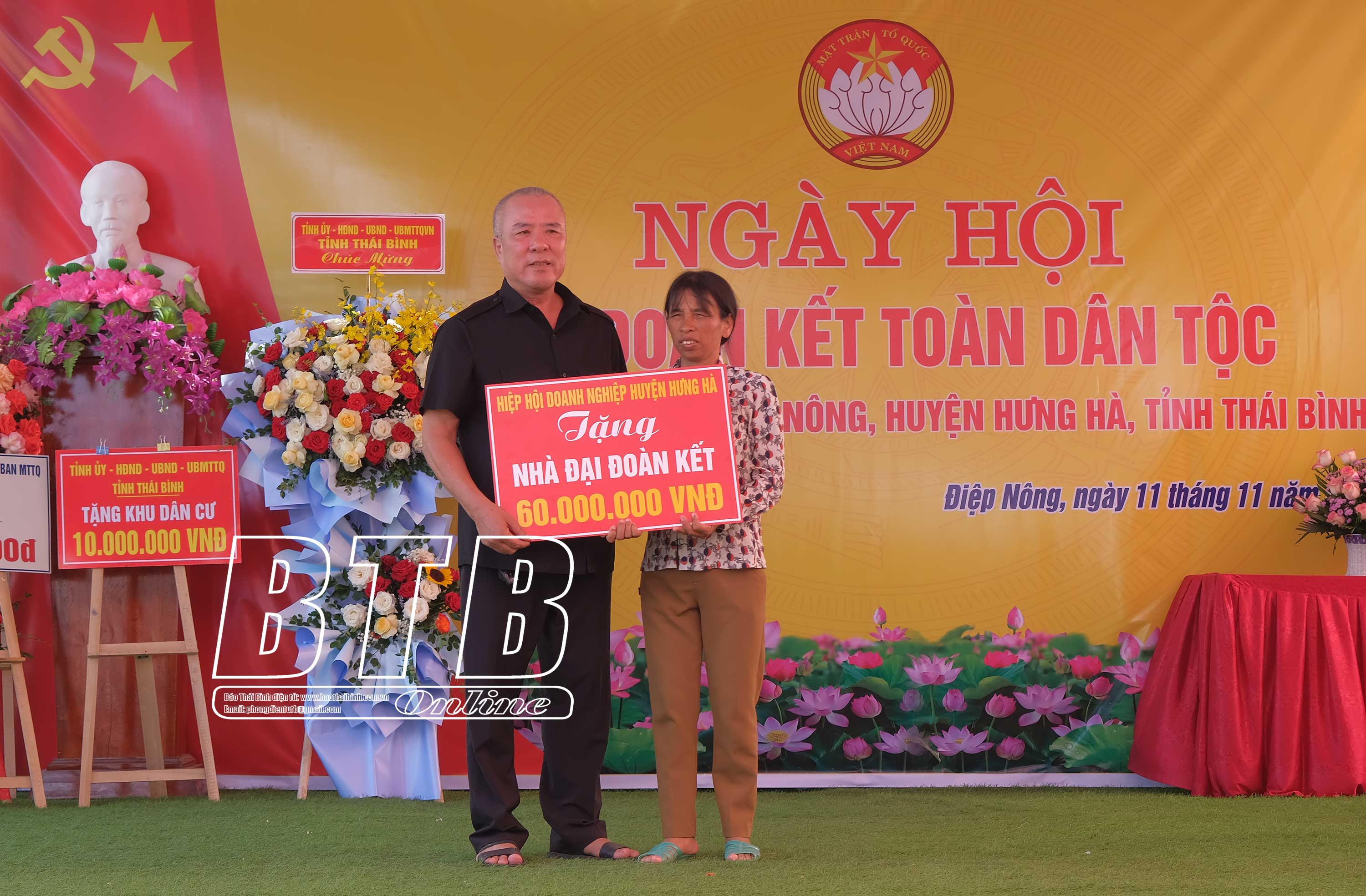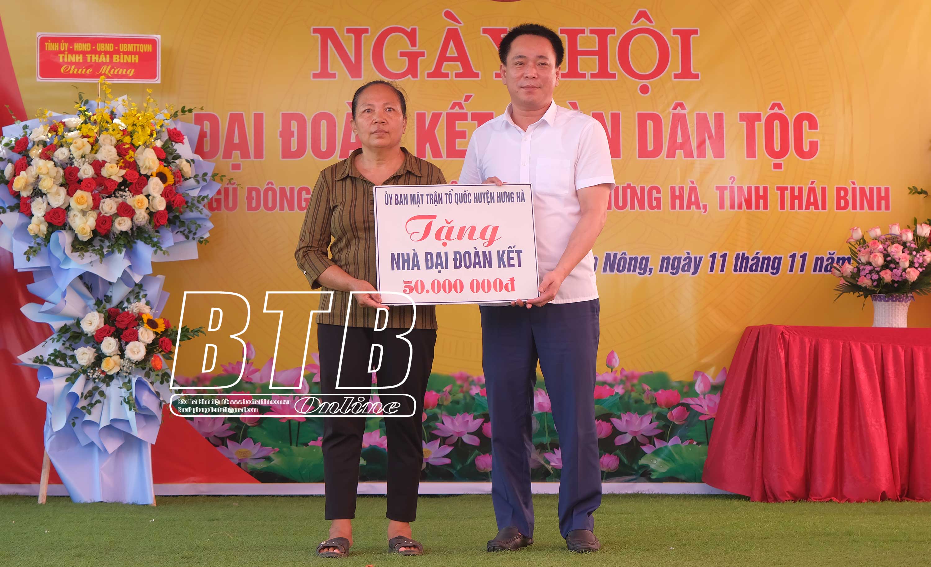 Nhân dịp này, các đồng chí lãnh đạo tỉnh, huyện Hưng Hà đã trao quà, kinh phí hỗ trợ xây dựng nhà đại đoàn kết cho các hộ nghèo, hộ có hoàn cảnh khó khăn trong thôn.