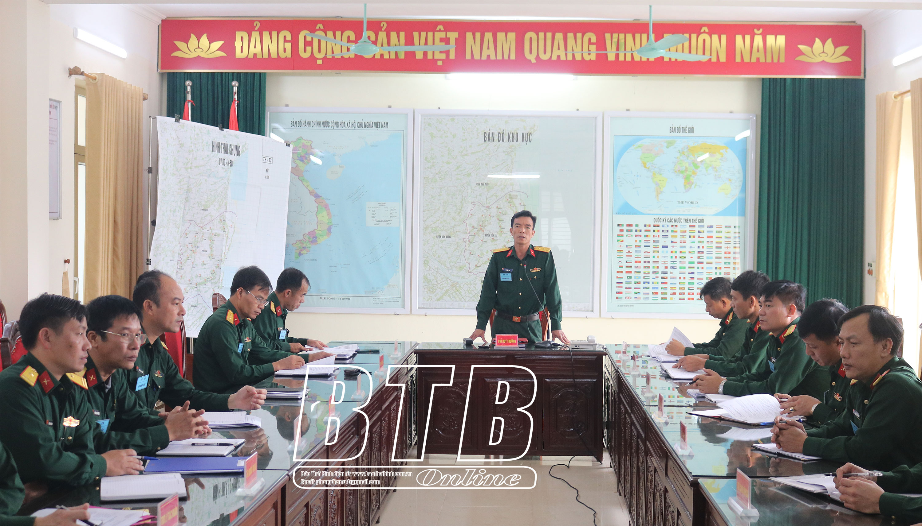 Lãnh đạo Ban Chỉ huy Quân sự huyện Tiền Hải triển khai các nội dung diễn tập.