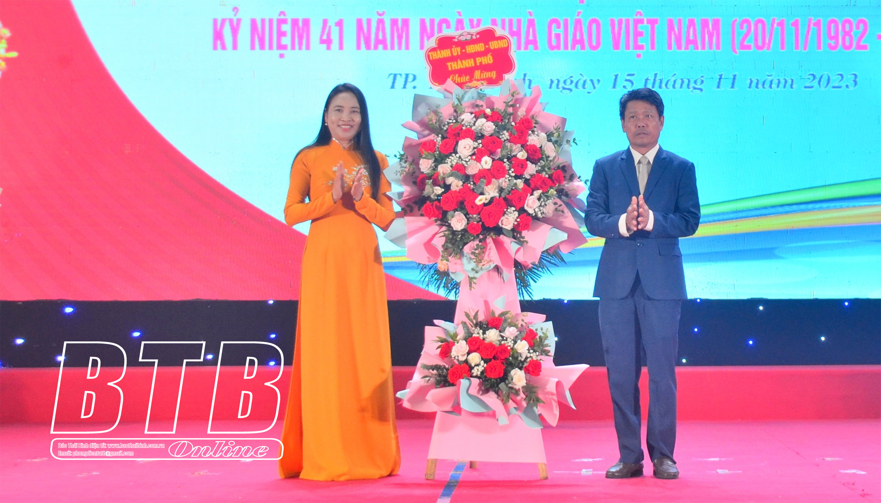 Phát biểu tại hội nghị, đồng chí Hoàng Văn Thành, Ủy viên Ban Thường vụ Tỉnh ủy, Bí thư Thành ủy, Chủ tịch HĐND thành phố ghi nhận, biểu dương và chúc mừng các thầy giáo, cô giáo nhân ngày Nhà giáo Việt Nam 20/11. Đồng thời, mong muốn các thầy giáo, cô giáo tiếp tục phấn đấu, khắc phục khó khăn để thực hiện tốt sự nghiệp “trồng người”, góp phần đào tạo, bồi dưỡng nhân tài, nâng cao chất lượng nguồn nhân lực, đáp ứng yêu cầu phát triển ngày càng cao của tỉnh, thành phố. Đồng chí Bí thư Thành ủy cũng đề nghị ngành giáo dục phải nỗ lực hơn nữa đáp ứng được nhu cầu của xã hội. Mỗi thầy cô giáo phải phấn đấu, rèn luyện, nâng cao năng lực của bản thân để hoàn thành tốt các nhiệm vụ, thật sự trở thành tấm gương đạo đức, tự học và sáng tạo cho học sinh noi theo.