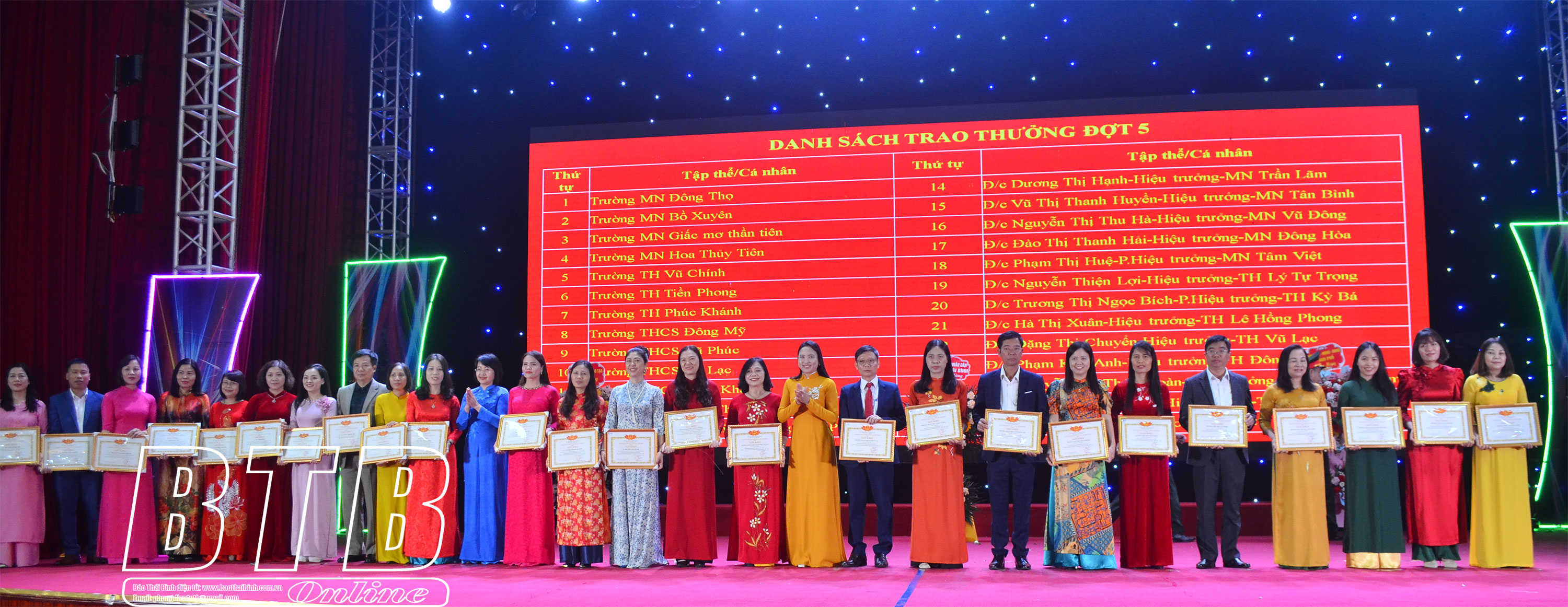 Lãnh đạo Sở Giáo dục và Đào tạo trao bằng khen của Bộ Giáo dục và Đào tạo cho các tập thể, cá nhân. Lãnh đạo thành phố trao bằng khen của UBND tỉnh cho các tập thể, cá nhân. Lãnh đạo thành phố trao danh hiệu chiến sĩ thi đua cấp tỉnh và giấy khen của Sở Giáo dục và Đào tạo.