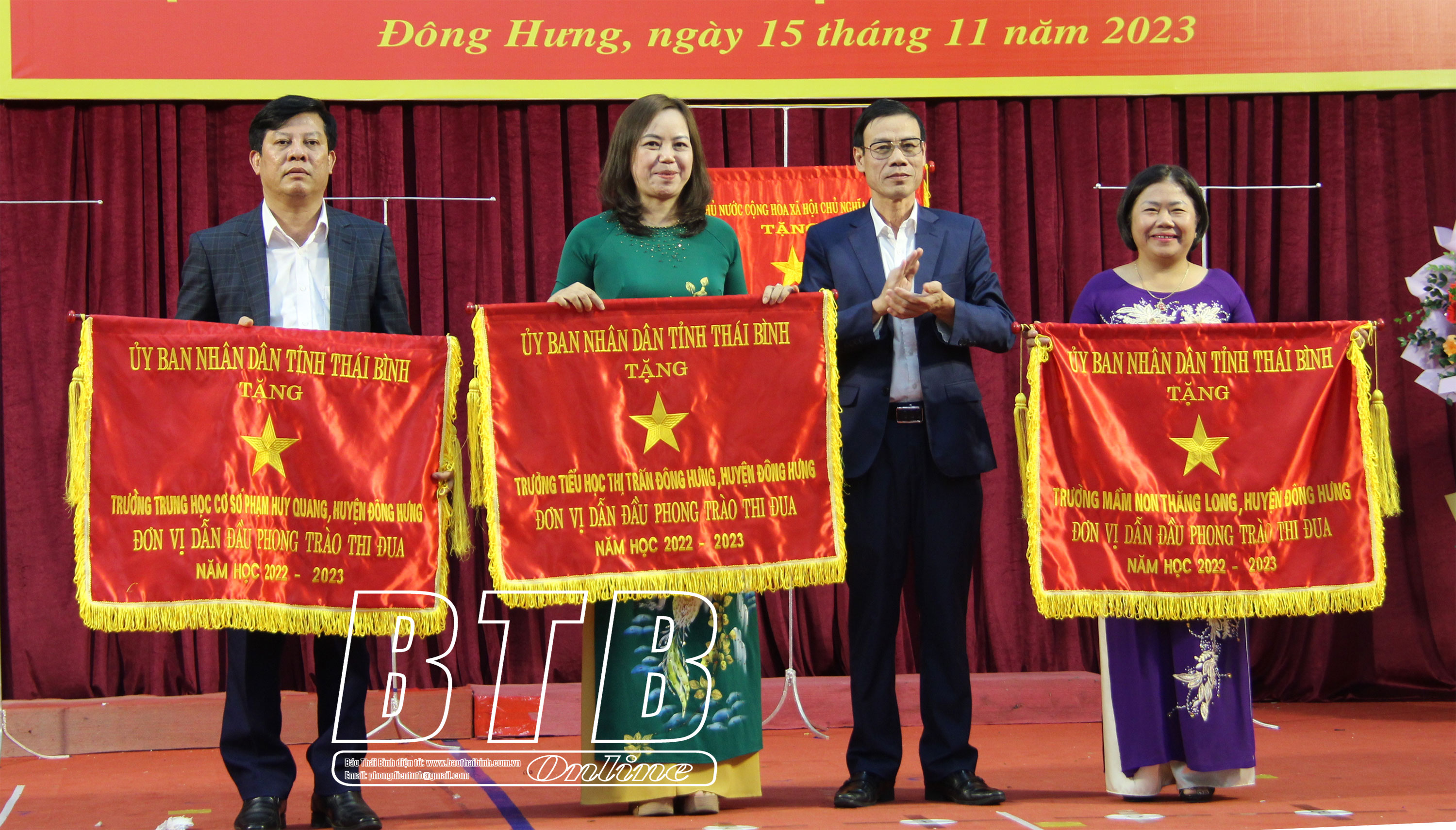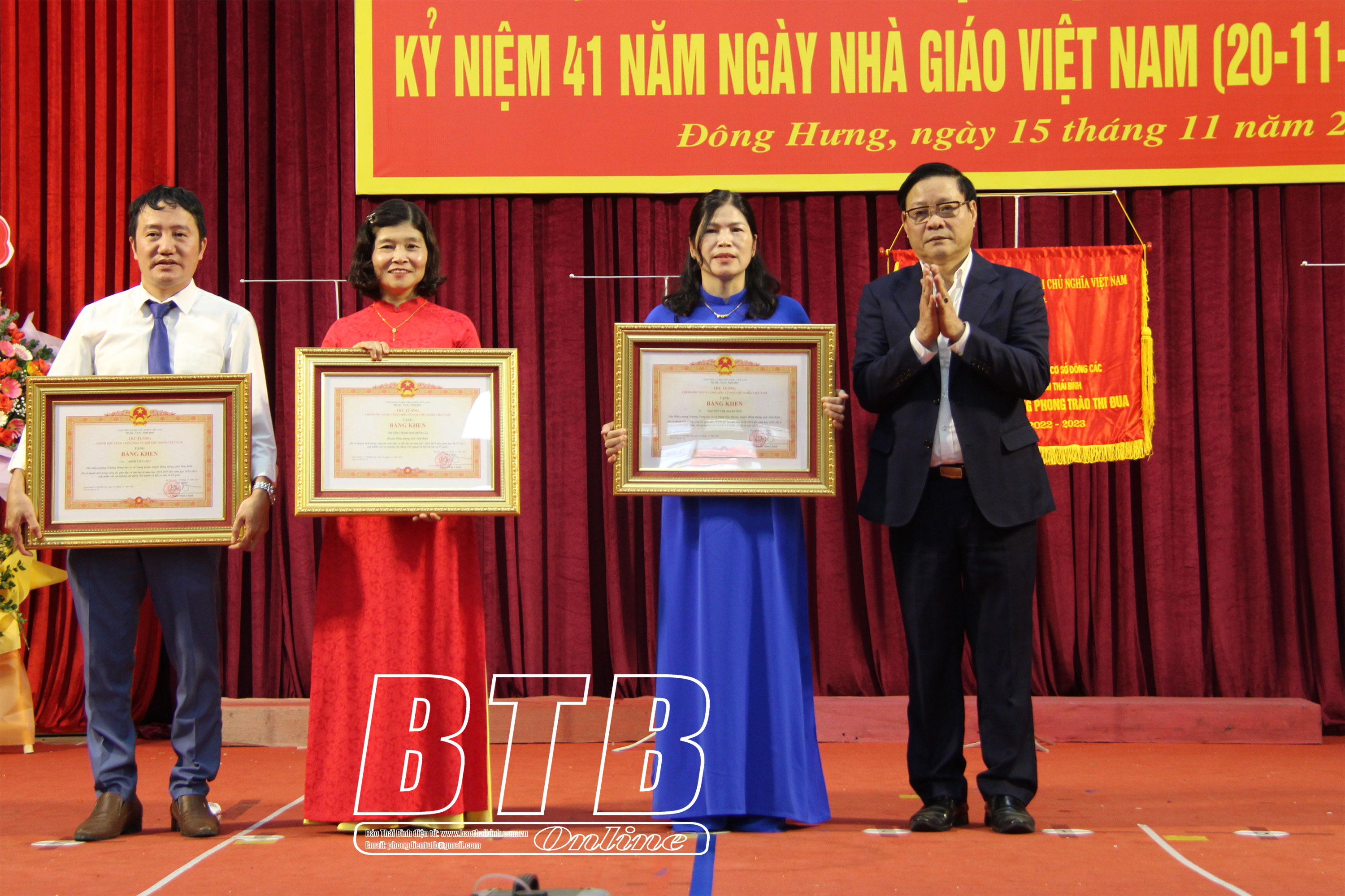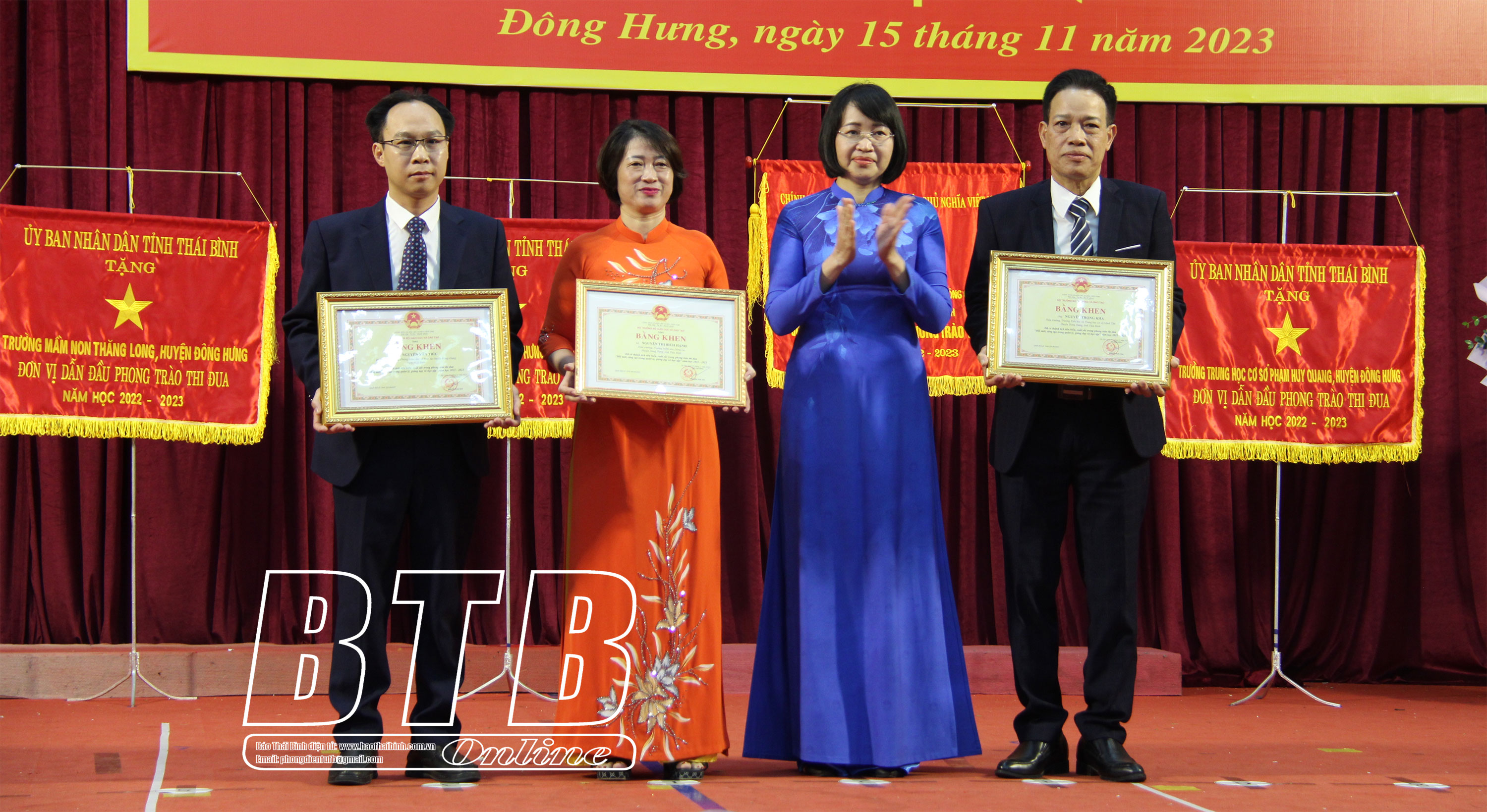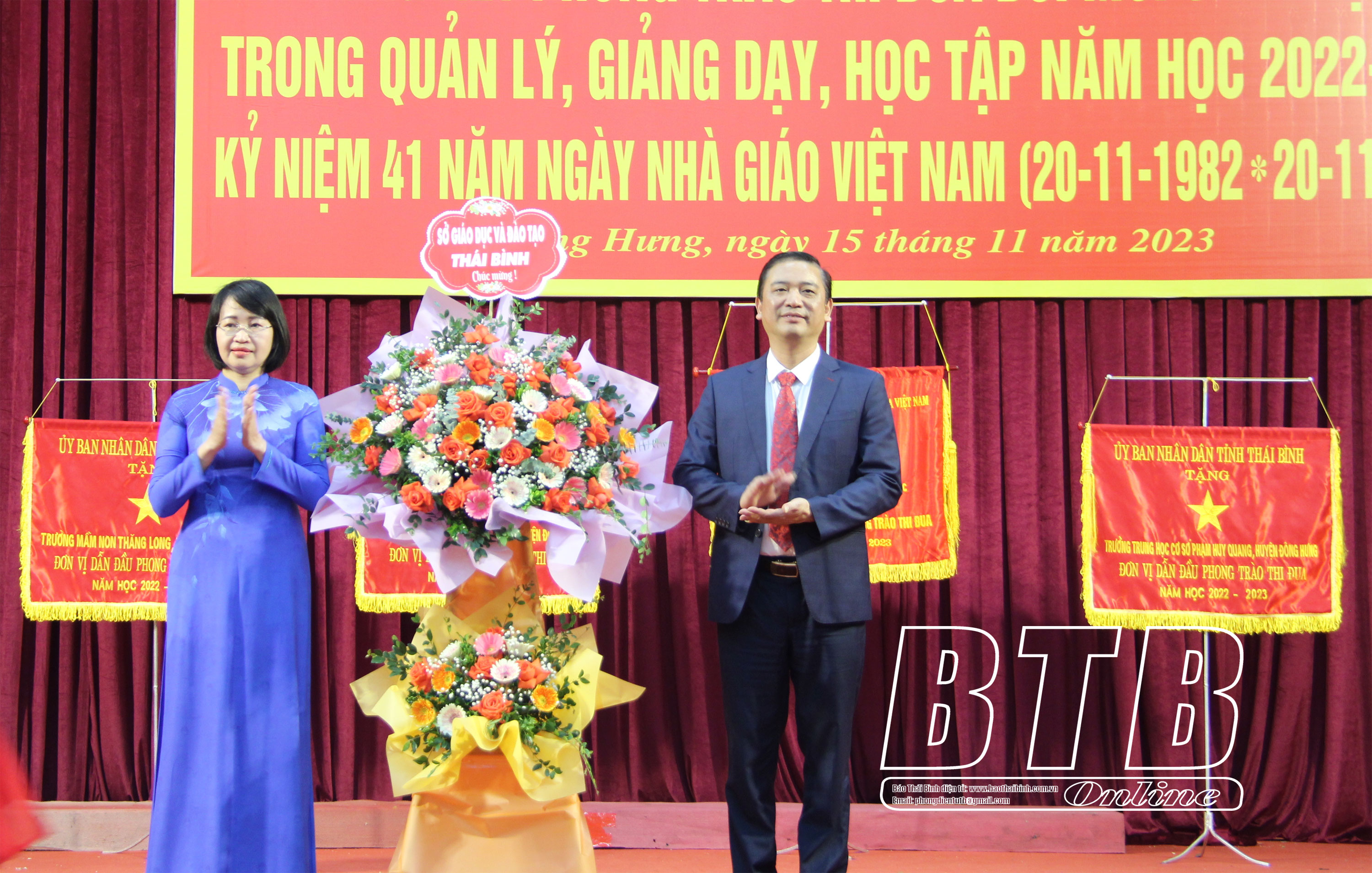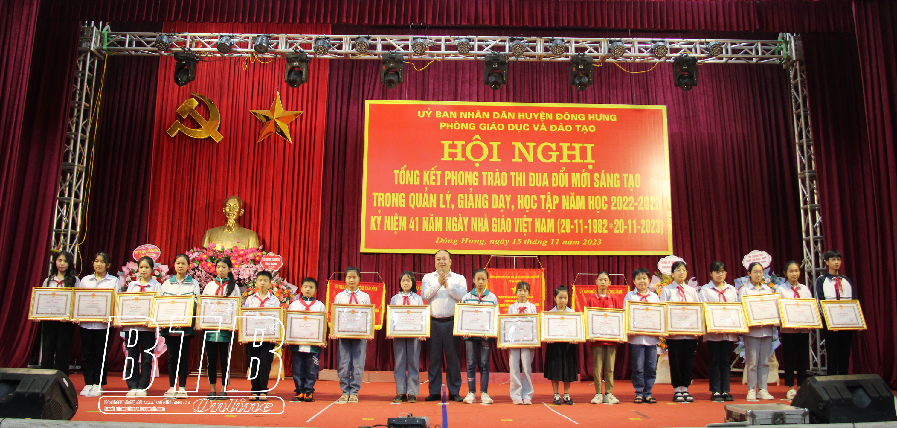 Chiều ngày 15/11, Phòng Giáo dục và Đào tạo huyện Đông Hưng tổ chức hội nghị tổng kết phong trào thi đua “Đổi mới, sáng tạo trong quản lý, giảng dạy và học tập” năm học 2022 - 2023; kỷ niệm 41 năm ngày Nhà giáo Việt Nam (20/11/1982 - 20/11/2023).