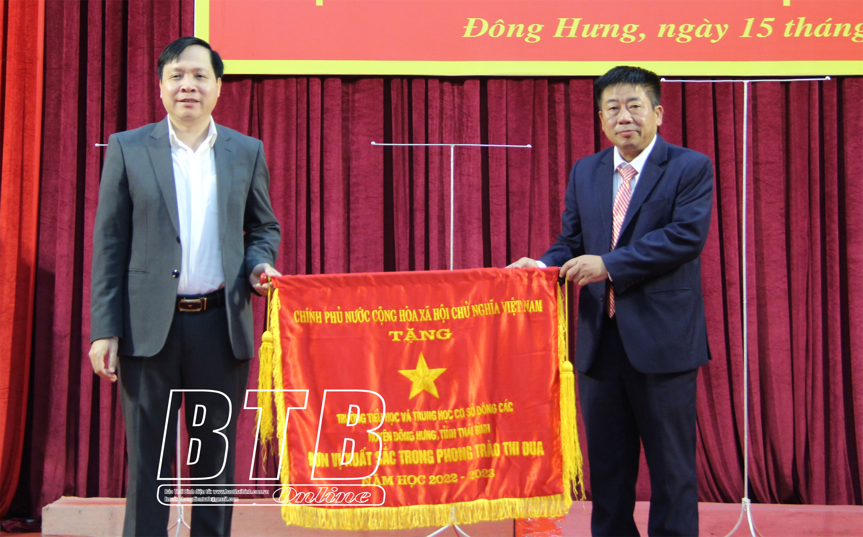 Lãnh đạo huyện Đông Hưng trao bằng khen của Thủ tướng Chính phủ cho các tập thể, cá nhân xuất sắc.Các tập nhận cờ thi đua của UBND tỉnh.Các cá nhân có thành tích xuất sắc được nhận bằng khen của Bộ Giáo dục và Đào tạo.