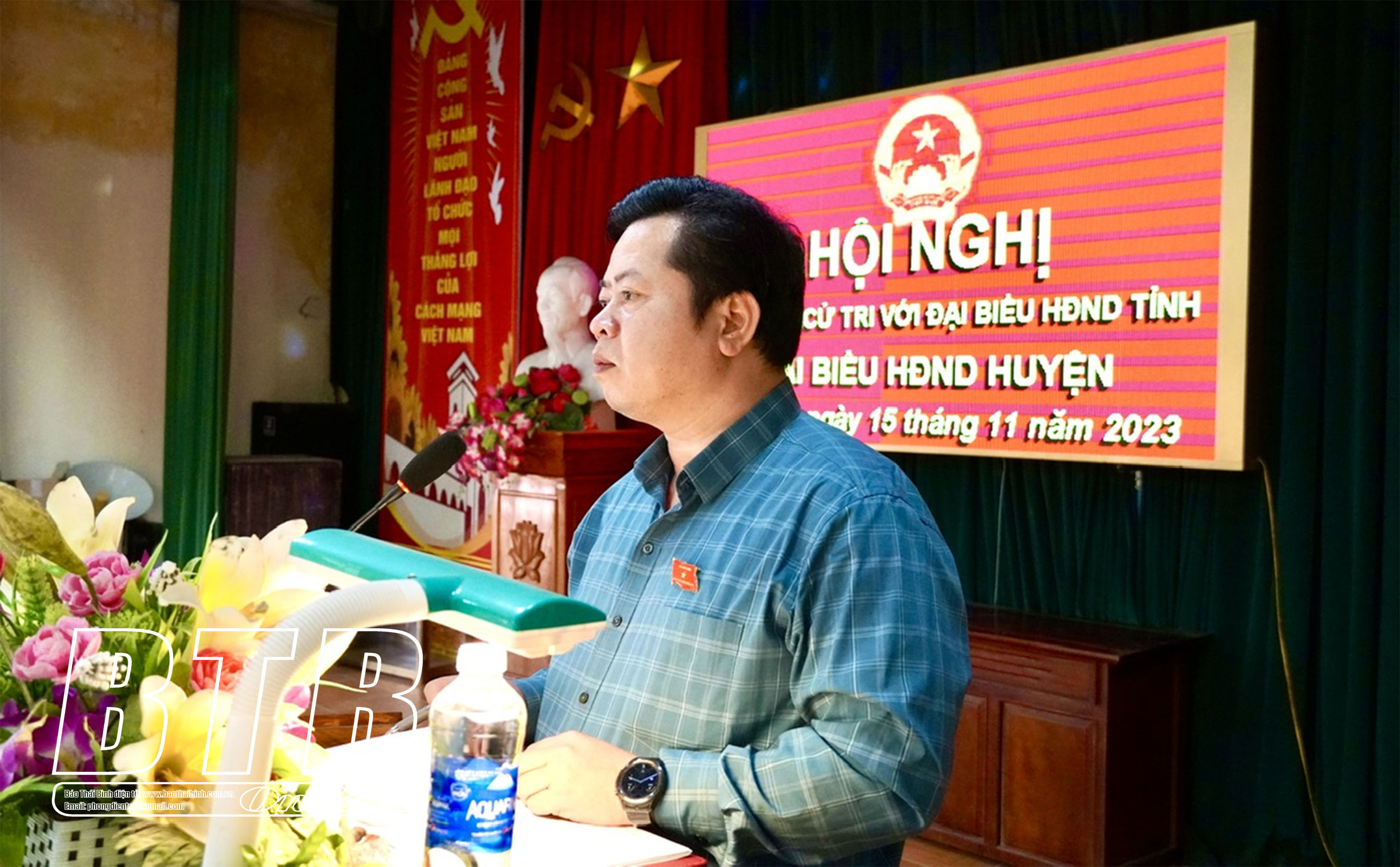 Cử tri xã Thụy Quỳnh phát biểu ý kiến tại hội nghị.