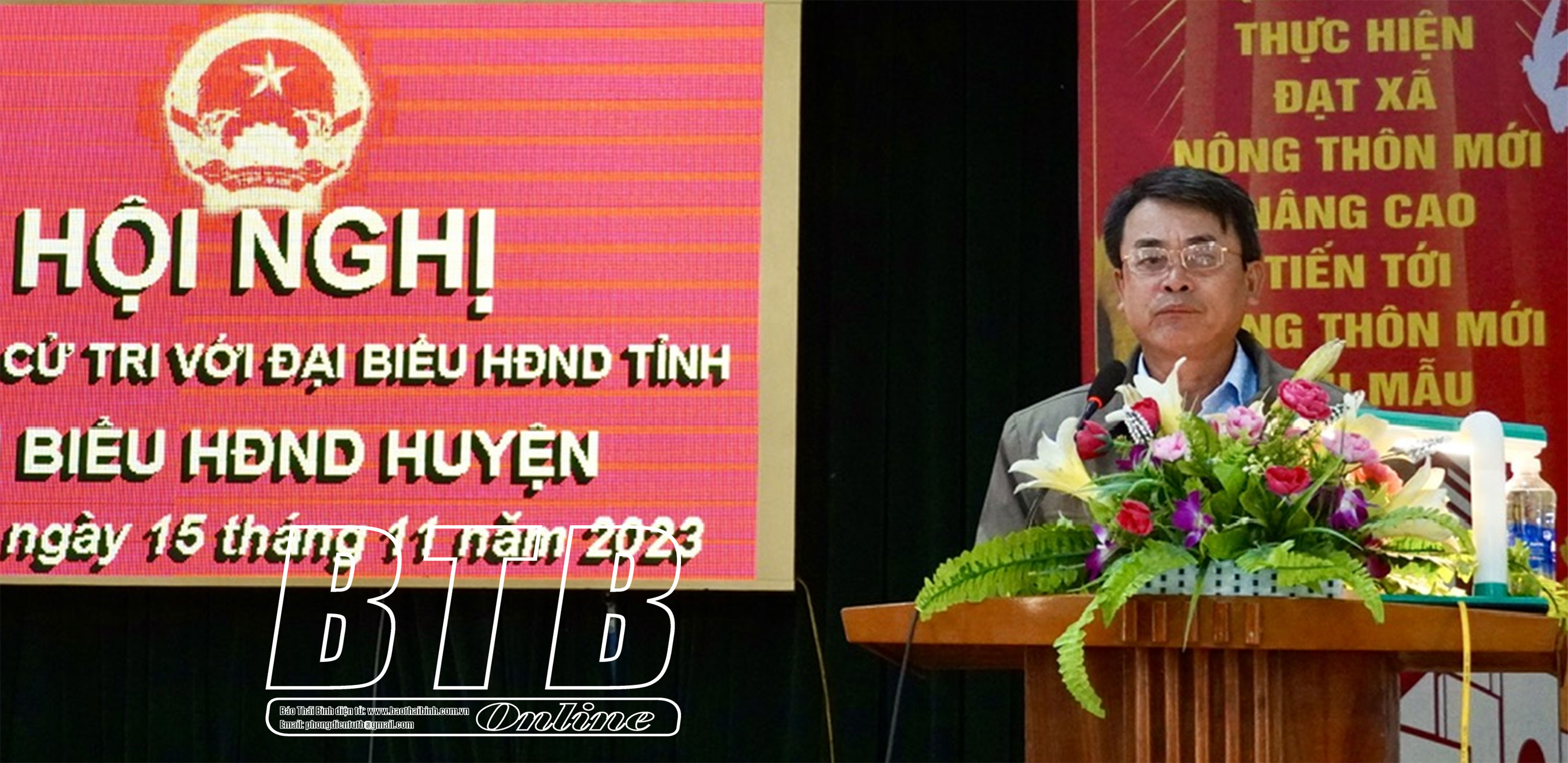 Các đại biểu HĐND tỉnh, HĐND huyện Thái Thụy dự tiếp xúc với cử tri tại điểm xã An Tân.