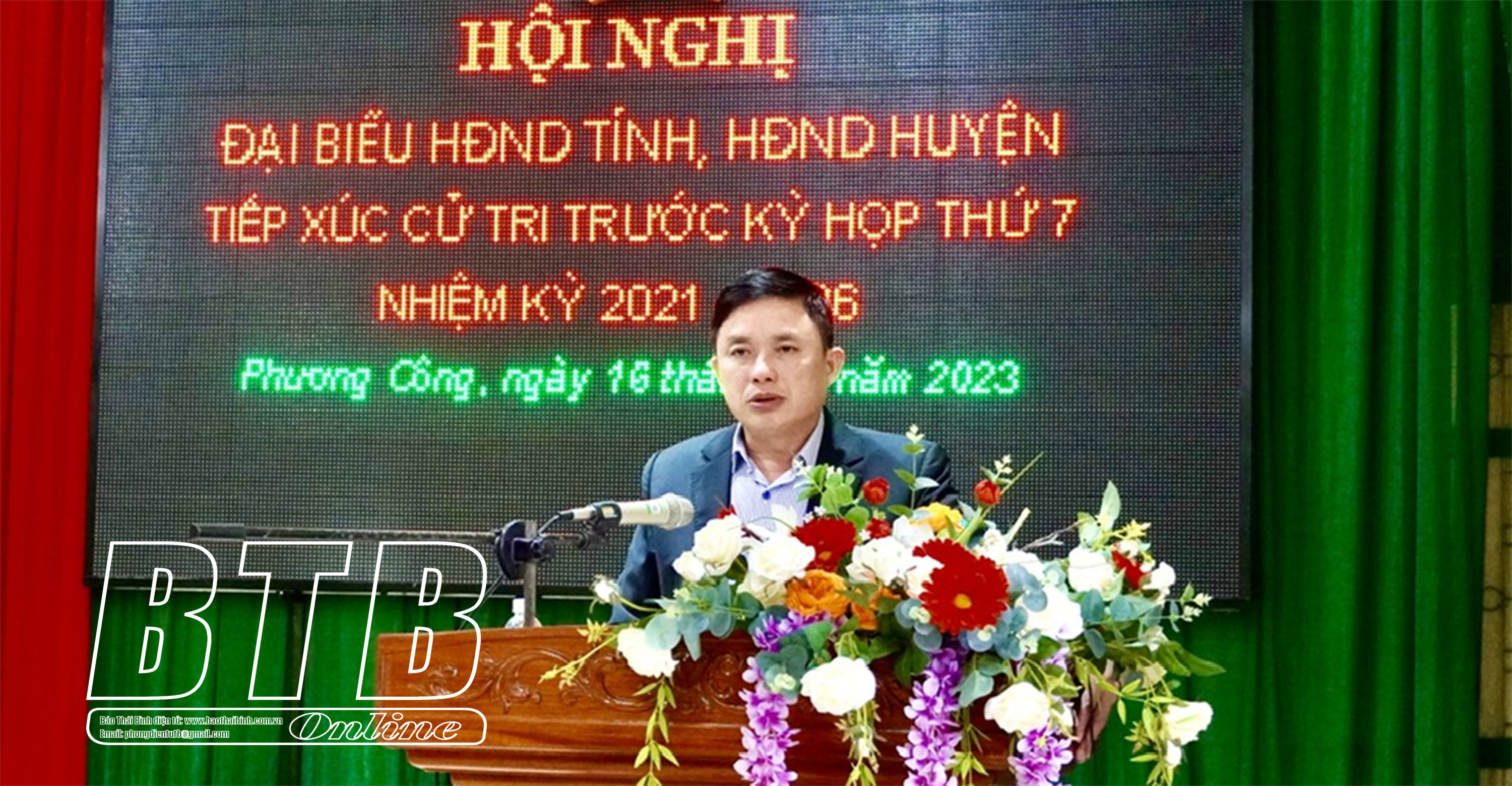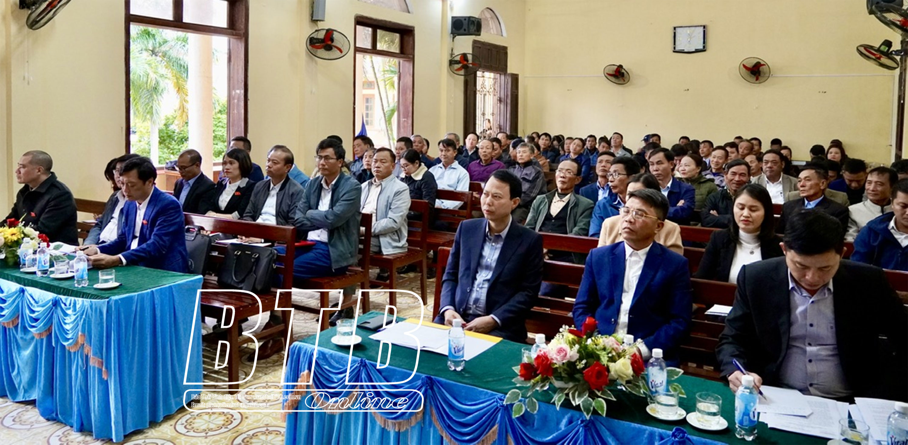 Các đại biểu HĐND tỉnh, HĐND huyện Tiền Hải dự tiếp xúc với cử tri tại điểm xã Phương Công.