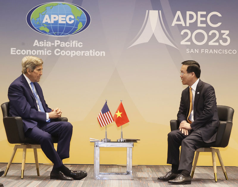 Đánh giá cao việc hai bên đang tích cực triển khai các thoả thuận cấp cao đạt được trong chuyến thăm Việt Nam của Tổng thống Joe Biden, phát triển quan hệ ngày càng thực chất, đi vào chiều sâu, ổn định, Chủ tịch nước Võ Văn Thưởng hoan nghênh Hoa Kỳ tăng cường hợp tác với Việt Nam, đặc biệt là trong các lĩnh vực mà Đặc phái viên John Kerry thời gian qua quan tâm thúc đẩy như ứng phó với biến đổi khí hậu và chuyển đổi năng lượng.
