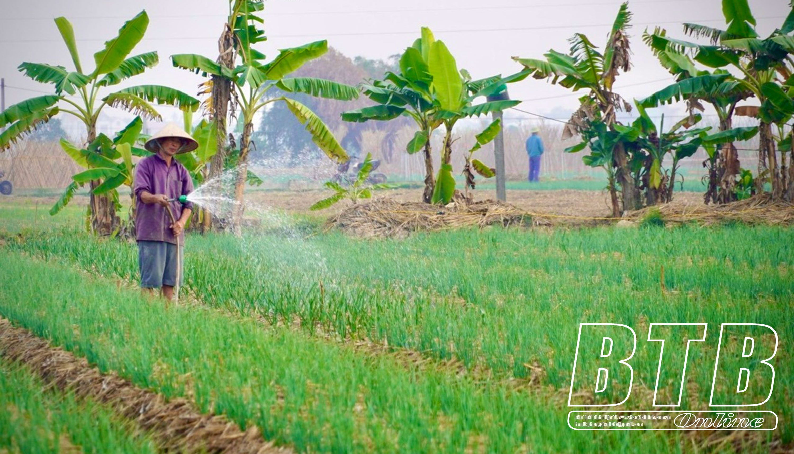 Người dân xã An Tân (Thái Thụy) chăm sóc cây trồng vụ đông.