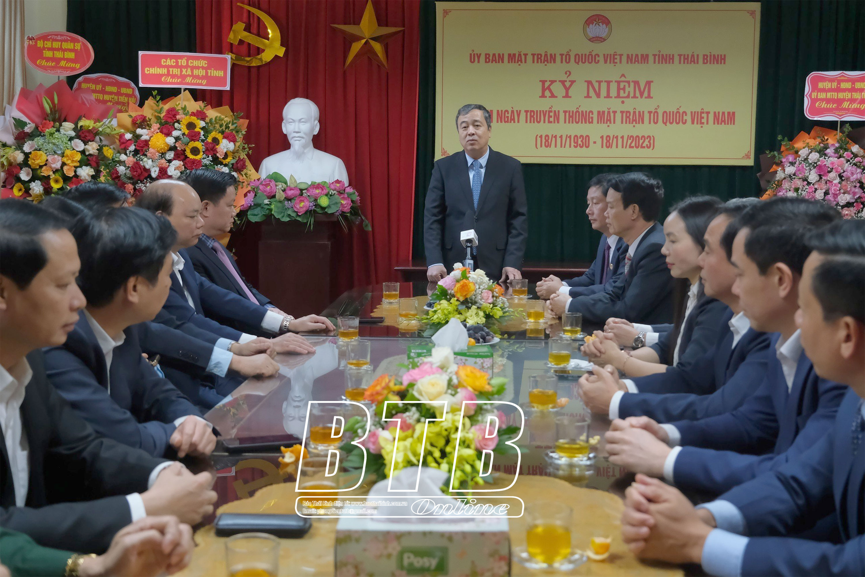 Chiều ngày 17/11, các đồng chí: Ngô Đông Hải, Ủy viên Ban Chấp hành Trung ương Đảng, Bí thư Tỉnh ủy; Nguyễn Khắc Thận, Phó Bí thư Tỉnh ủy, Chủ tịch UBND tỉnh cùng các đồng chí Ủy viên Ban Thường vụ Tỉnh ủy, lãnh đạo HĐND, UBND, Đoàn đại biểu Quốc hội tỉnh đã đến tặng hoa, chúc mừng các cán bộ làm công tác mặt trận các cấp nhân kỷ niệm 93 năm ngày truyền thống MTTQ Việt Nam (18/11/1930 - 18/11/2023) tại Ủy ban MTTQ tỉnh.