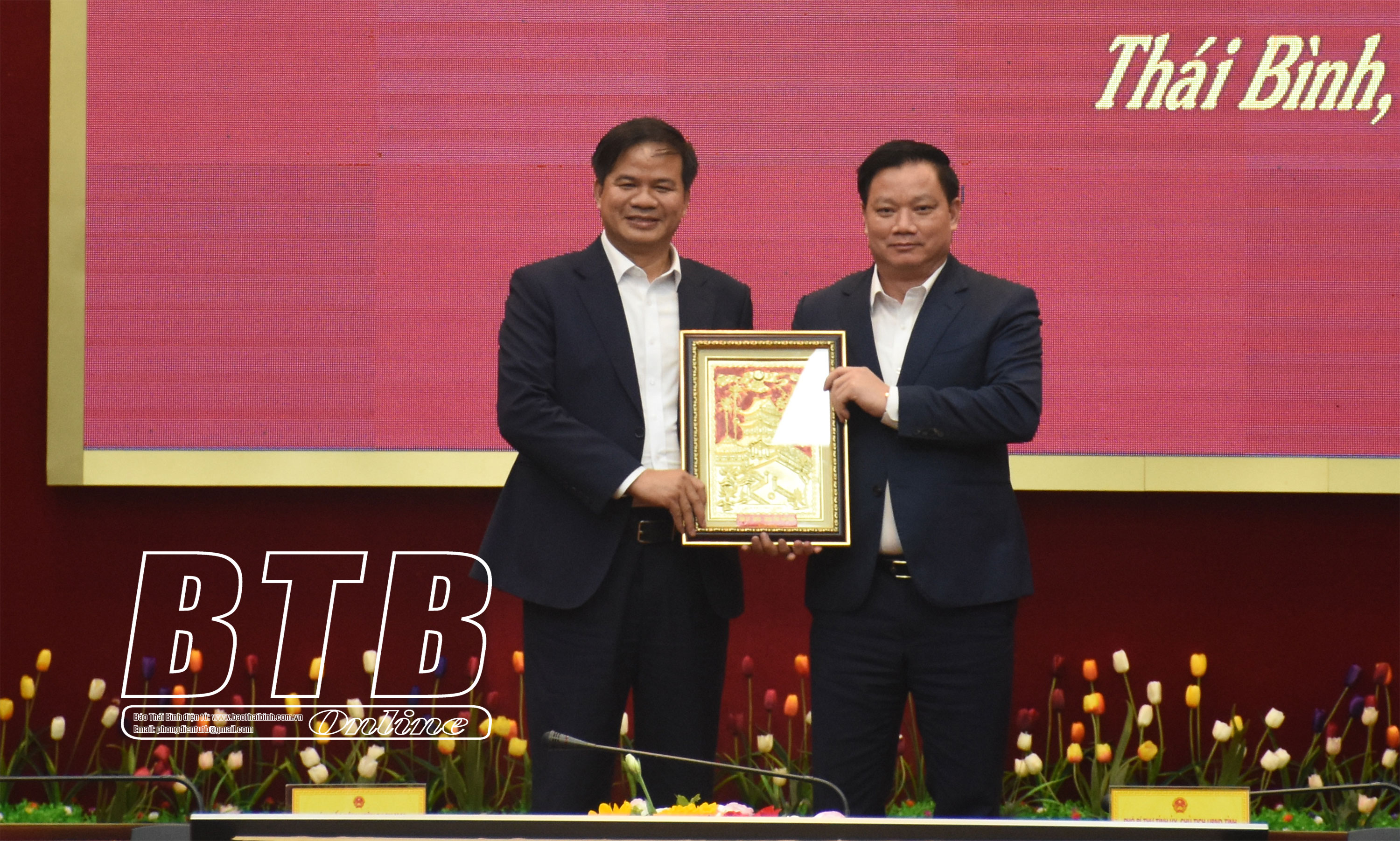 UBND tỉnh Thái Bình và Bệnh viện Bạch Mai ký kết thỏa thuận hợp tác giai đoạn 2023 - 2030.Đồng chí Ngô Đông Hải, Ủy viên Ban Chấp hành Trung ương Đảng, Bí thư Tỉnh ủy tặng quà lưu niệm đồng chí Bộ trưởng Bộ Y tế.