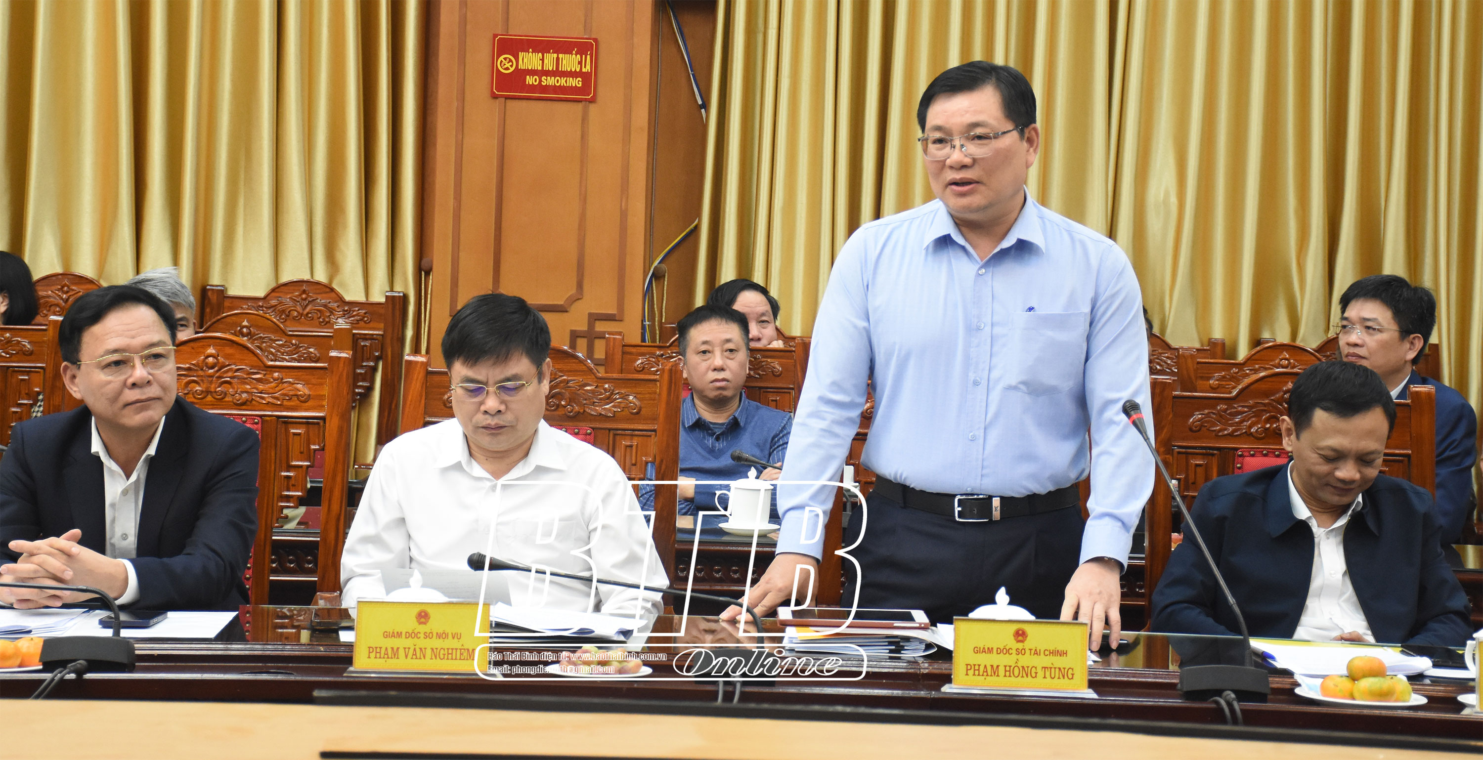 Đồng chí Trần Thị Bích Hằng, Tỉnh ủy viên, Phó Chủ tịch UBND tỉnh phát biểu tại buổi làm việc.Lãnh đạo Sở Tài chính phát biểu tại buổi làm việc.