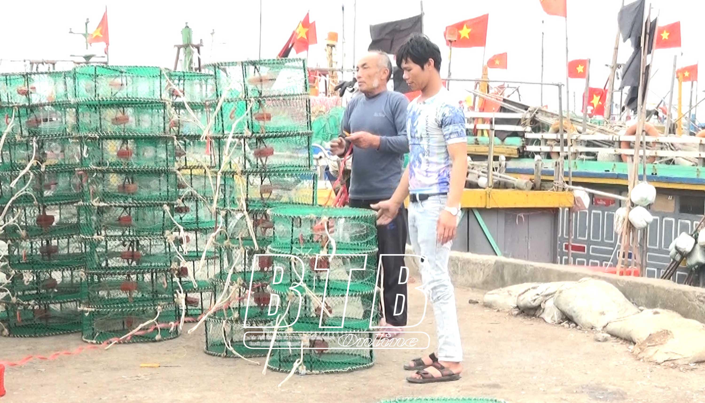 Ngư dân huyện Tiền Hải chuẩn bị ngư cụ ra khơi đánh bắt hải sản.