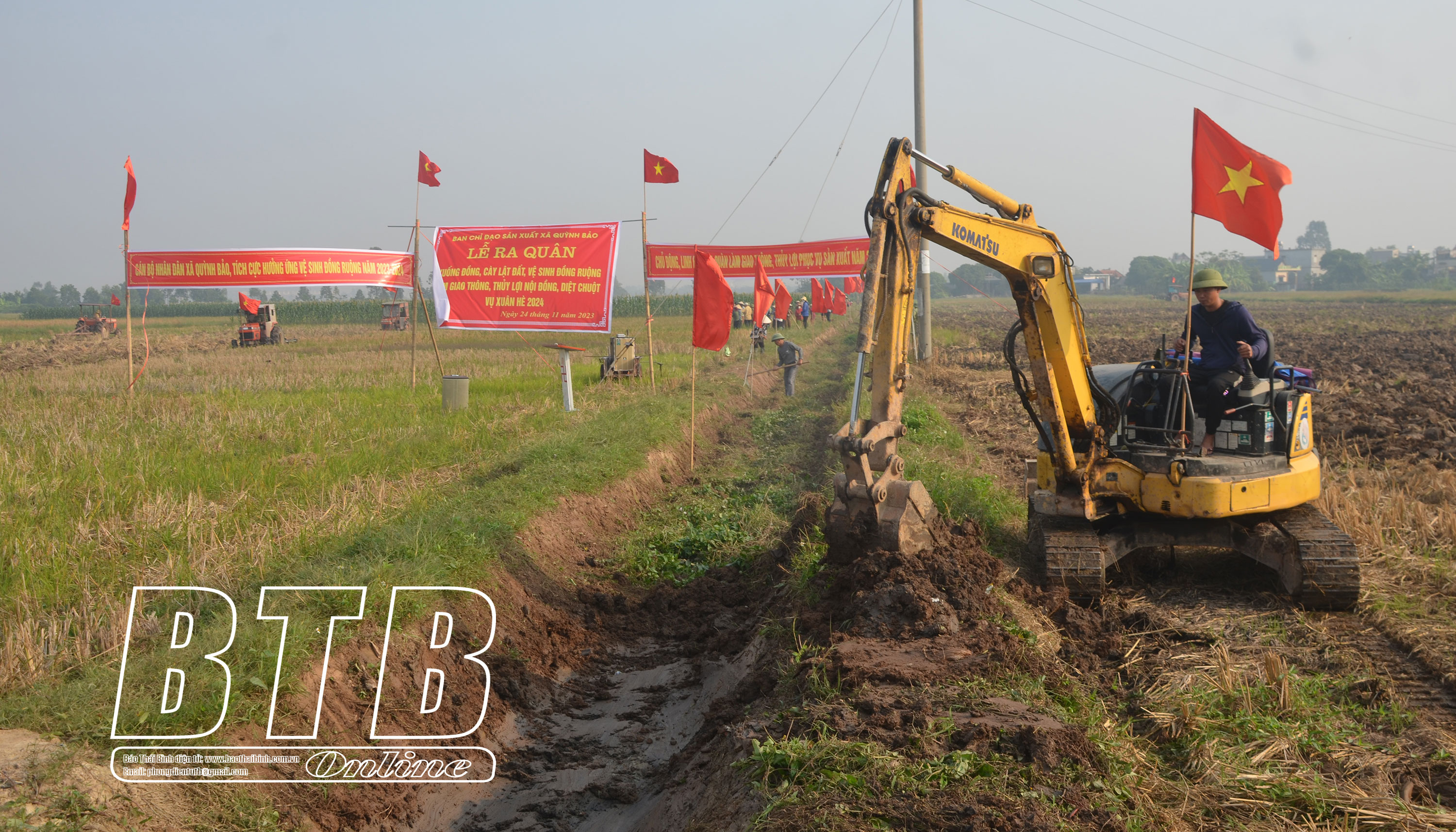 Nông dân xã Quỳnh Bảo (Quỳnh Phụ) tổ chức nạo vét kênh mương, vệ sinh đồng ruộng.