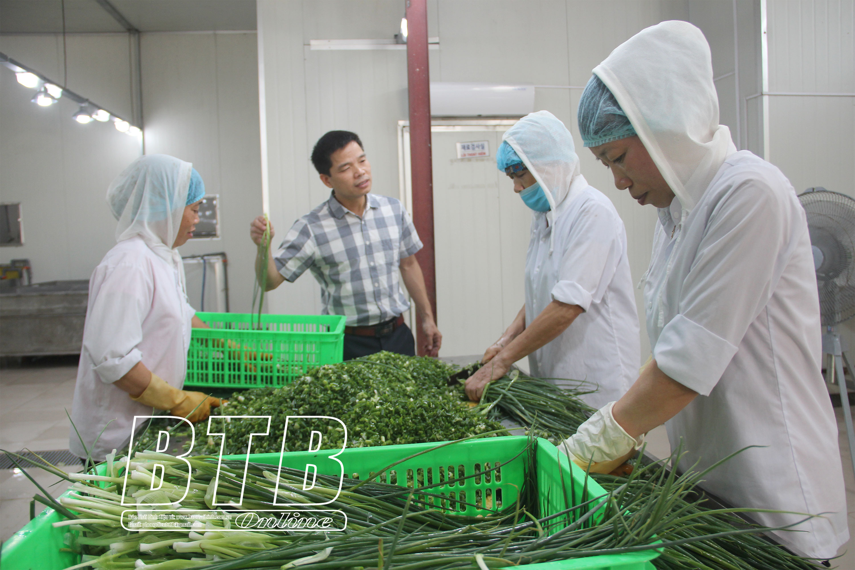 Chế biến hành tại Công ty Cổ phần Nông sản - Thương mại dịch vụ Thanh Nhàn (Quỳnh Phụ).