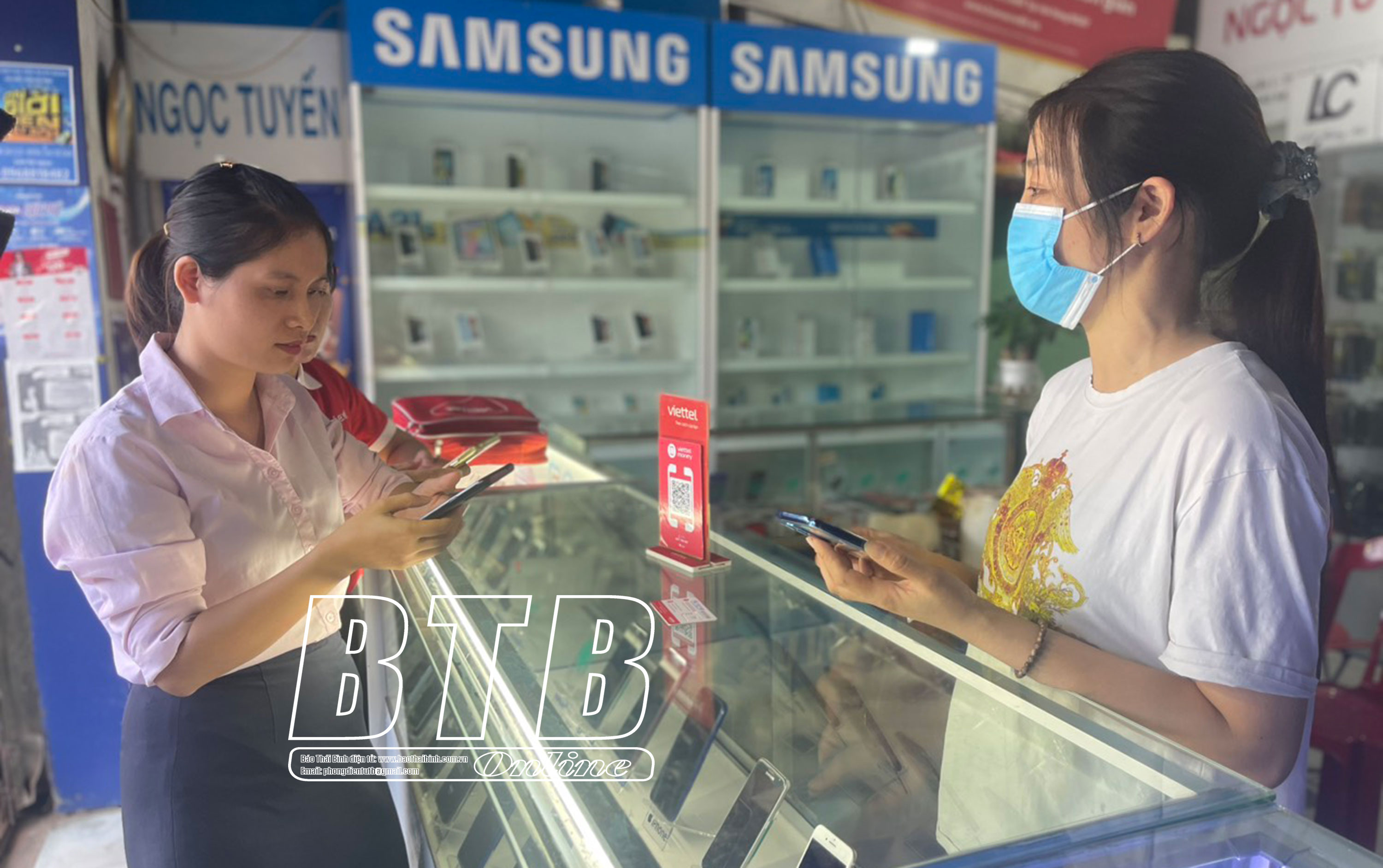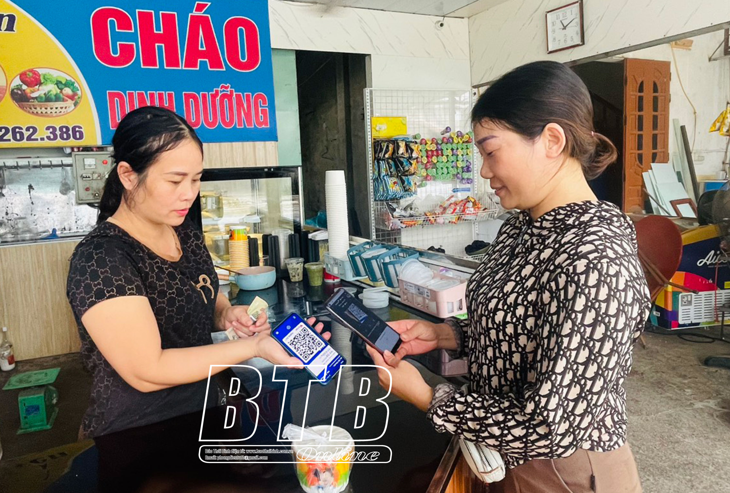 Ông Nguyễn Duy Hiền, Chủ tịch UBND thị trấn Hưng Hà cho biết: Chính quyền địa phương đã chỉ đạo các tổ công nghệ số cộng đồng của thị trấn tích cực tuyên truyền về những tiện ích của việc TTKDTM. Vận động các cơ sở kinh doanh, dịch vụ, nhất là các cửa hàng tạp hóa, siêu thị mini, quán ăn trên địa bàn triển khai cung cấp mã QR nhằm đem lại lợi ích thiết thực cho người bán và người mua. Đến nay, trên địa bàn thị trấn có hơn 80% các siêu thị, cửa hàng, chợ ứng dụng thanh toán bằng hình thức chuyển khoản hoặc quét mã QR.