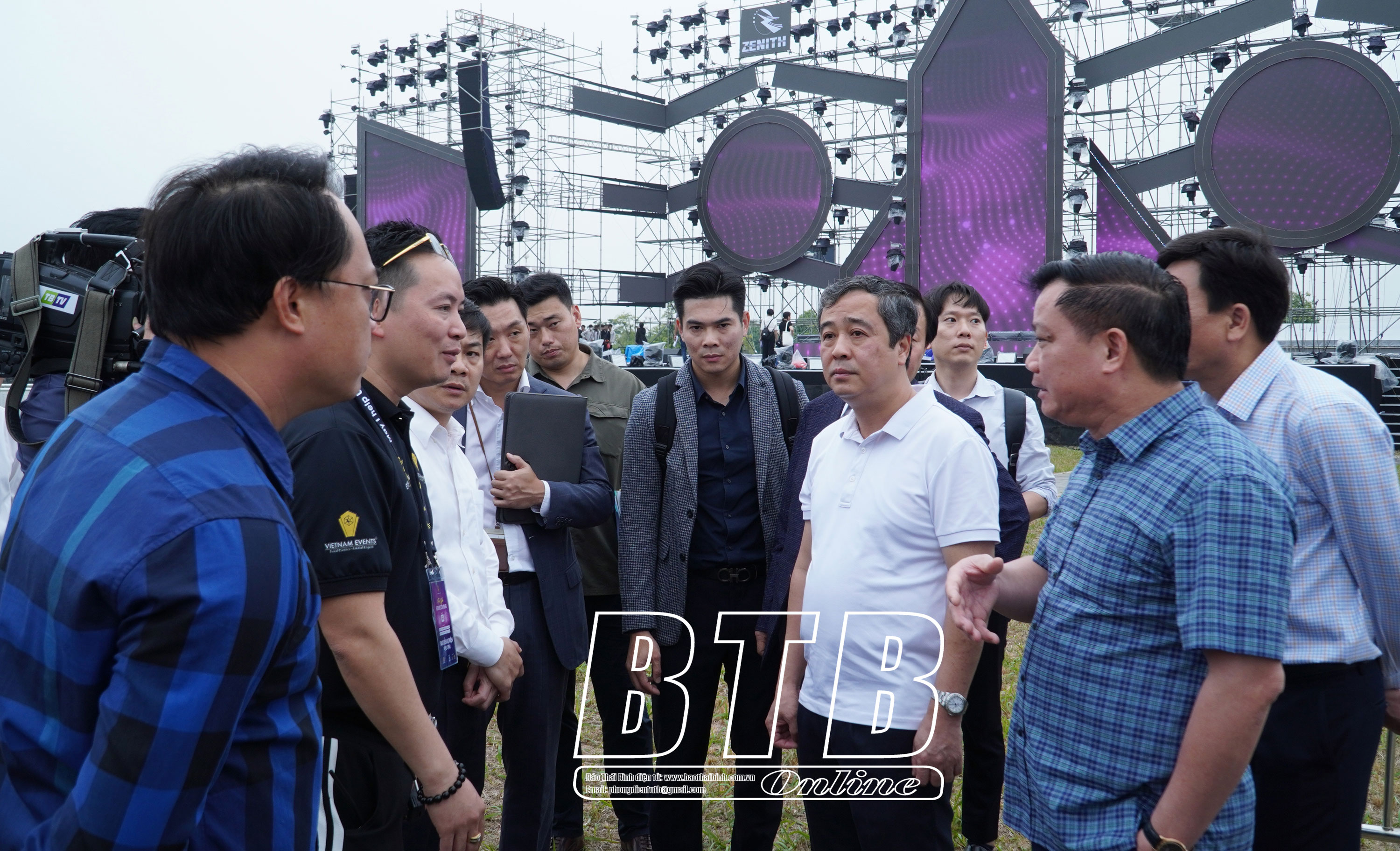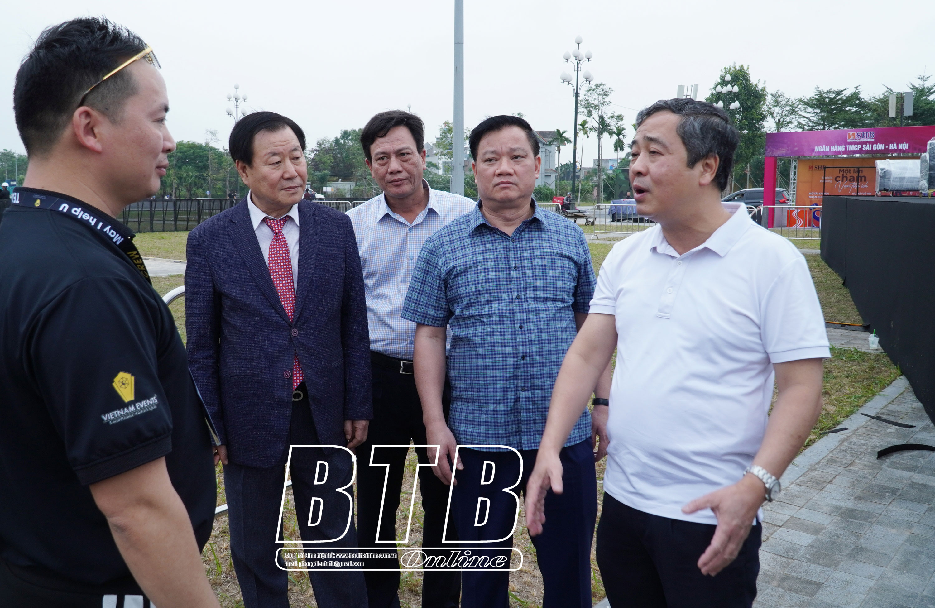 Các đồng chí lãnh đạo tỉnh kiểm tra những khâu chuẩn bị cuối cùng trước khi chính thức khai mạc chương trình “Thai Binh Homecoming Day”.