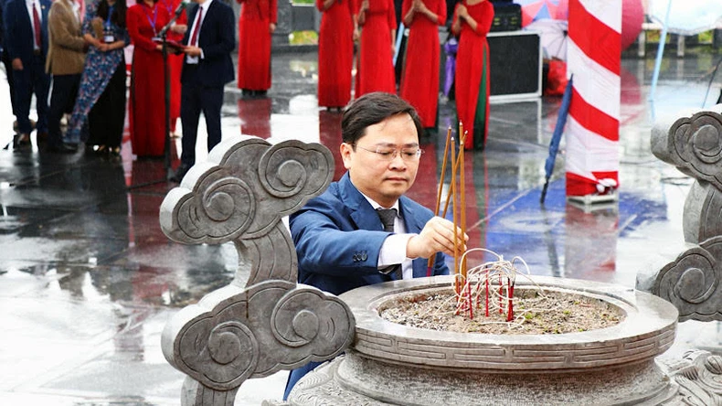 Đoàn đại biểu tỉnh Bắc Ninh thành kính dâng hương trước tượng đài đồng chí Ngô Gia Tự.