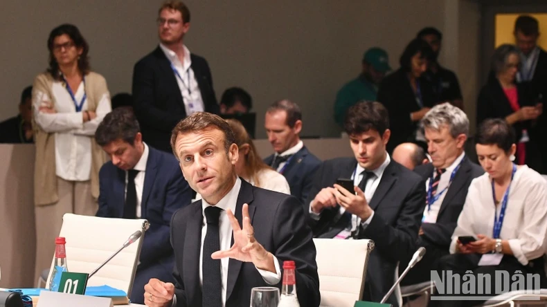 Tổng thống Pháp Emmanuel Macron phát biểu.