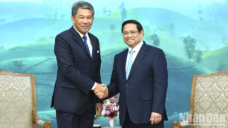 Thủ tướng Phạm Minh Chính và Bộ trưởng Quốc phòng Malaysia Dato’ Seri Utama Haji Mohamad Bin Haji Hasan. (Ảnh: TRẦN HẢI).