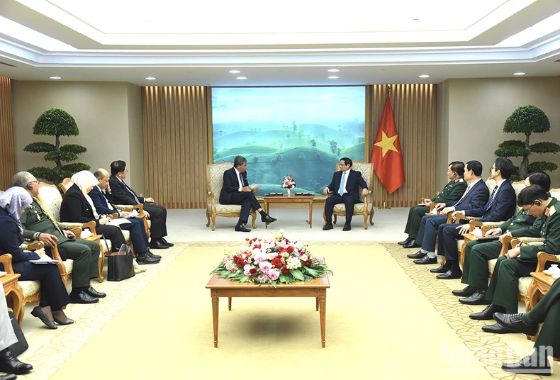 Thủ tướng Phạm Minh Chính tiếp Bộ trưởng Quốc phòng Malaysia Dato’ Seri Utama Haji Mohamad Bin Haji Hasan. (Ảnh: TRẦN HẢI).