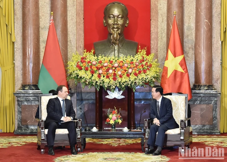 Ngày 8/12, tại Phủ Chủ tịch, trong buổi tiếp Thủ tướng Cộng hòa Belarus Roman Golovchenko đang có chuyến thăm chính thức Việt Nam từ ngày 6-9/12, Chủ tịch nước Võ Văn Thưởng vui mừng nhận thấy quan hệ chính trị ngoại giao giữa hai nước tiếp tục được thúc đẩy, tạo nền tảng quan trọng cho phát triển hợp tác trên các lĩnh vực khác như kinh tế, thương mại, đầu tư, giáo dục, văn hóa, giao lưu nhân dân…